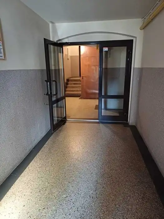 Do mieszkania przynależą 2 piwnice i wspólny strych. Okna plastikowe, podłoga wykładzina PCV na płycie OSB (położonej na deskach) Całość - do odświeżenia, łazienka - do remontu (okafelkowanie).