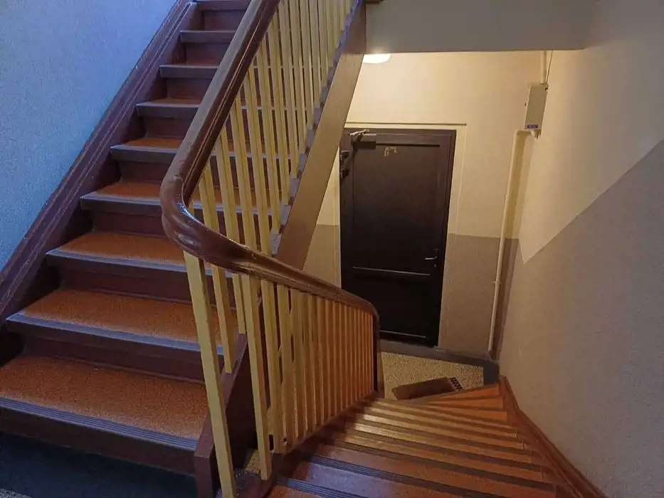 Klatka schodowa po remoncie, dach w budynku wyremontowany, elewacja nieodnawiana.