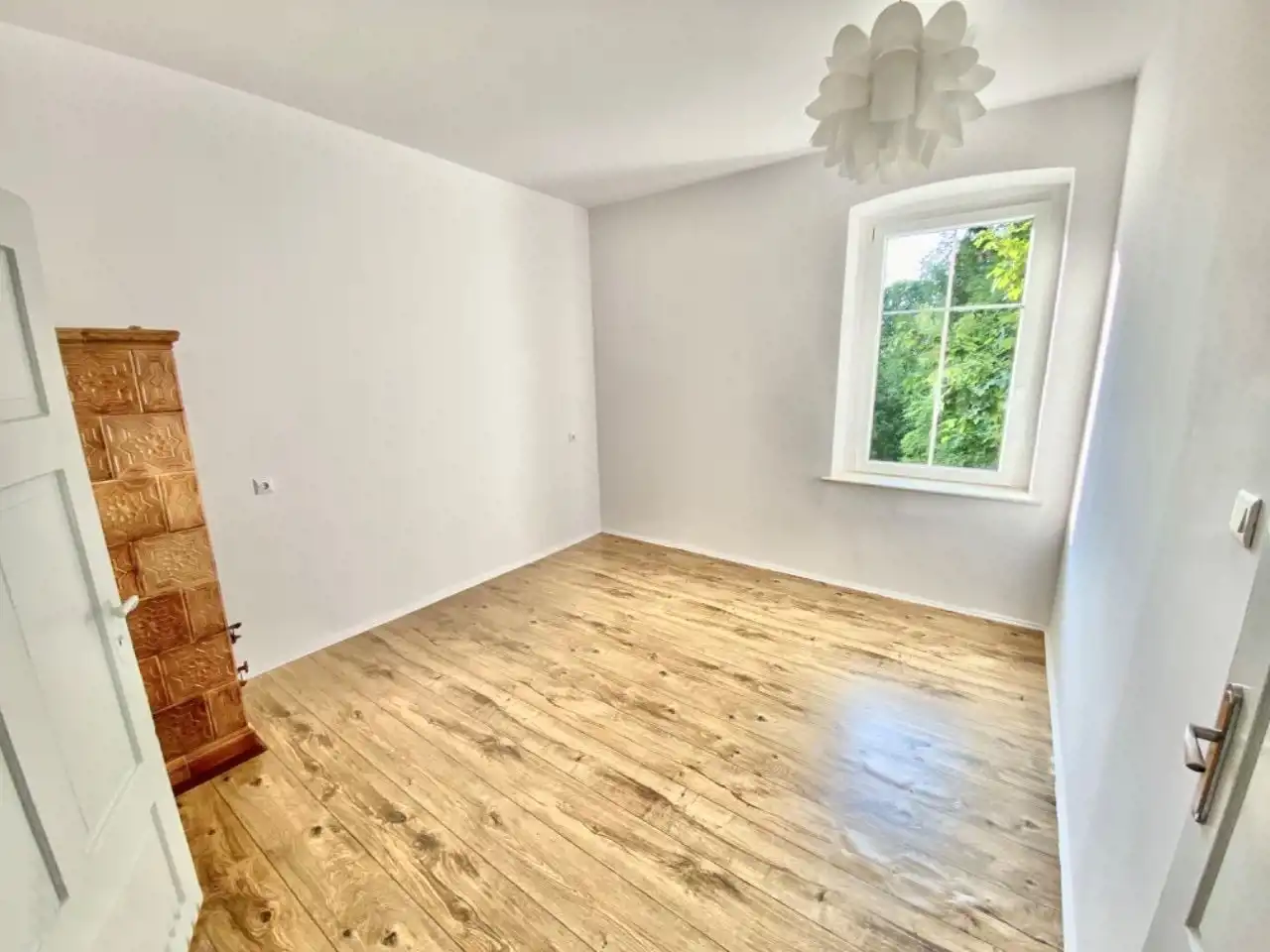 Mieszkanie na chwile obecną jest gruntownie odświeżone nie potrzebuje żadnych dodatkowych remontów. Posiada nową instalację wodną(ciepła + zimna woda), oraz elektryczną. Ogrzewanie na paliwo stałe(kominek + piec węglowy) plus ogrzewanie elektryczne w wc.