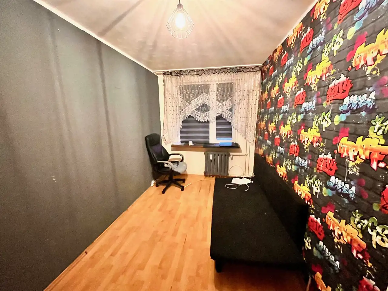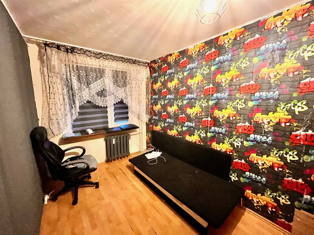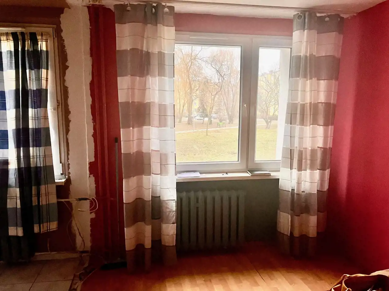 Standard mieszkania: okna PCV, usunięta ścianka działowa miedzy pokojem a kuchnią, na podłodze panele starszej daty na ścianach gładzie z ubytkami oraz tapeta. Łazienka z wanna. Glazura i terakota z ubytkami.