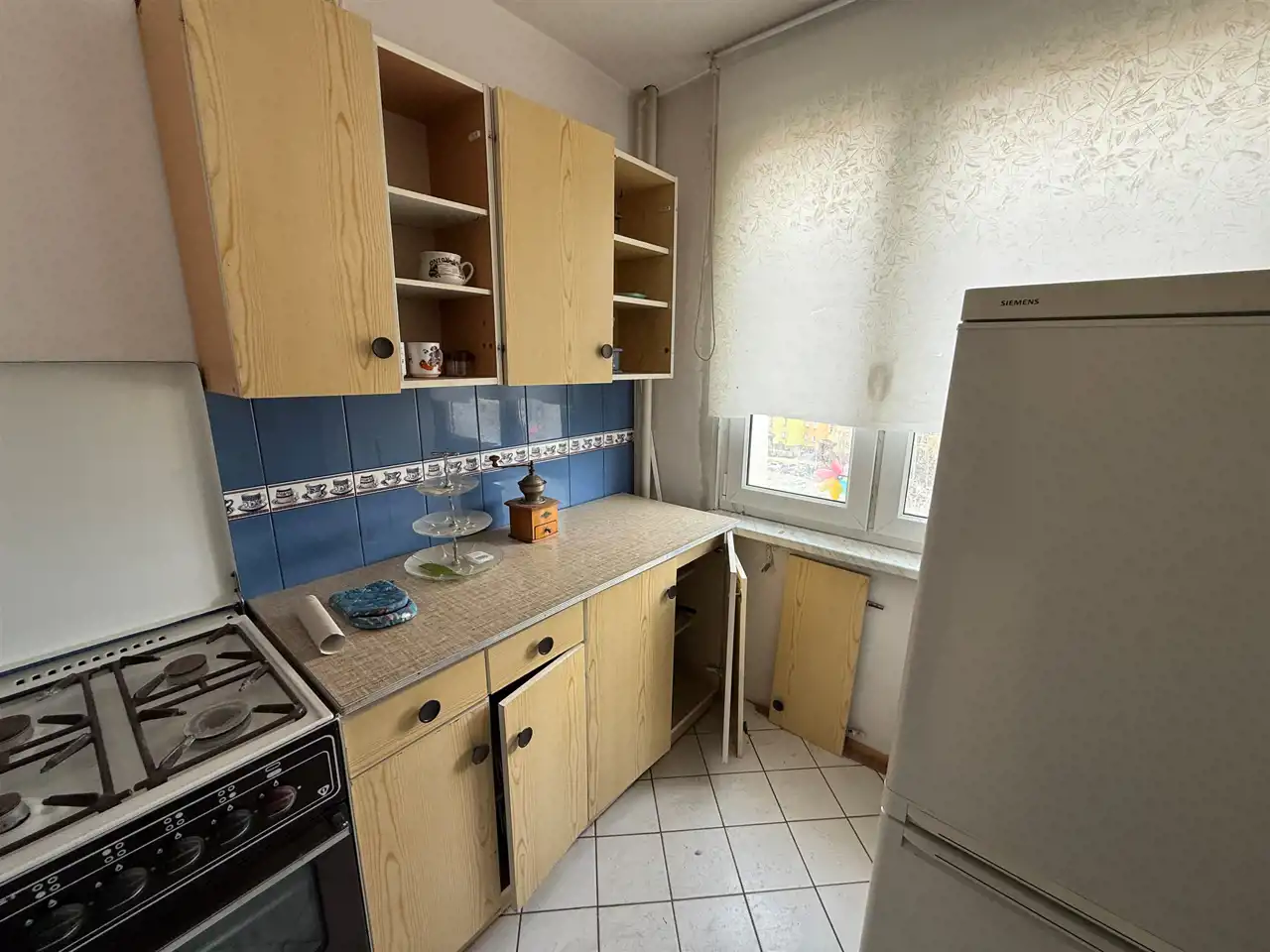 Mieszkanie wymaga gruntownego odnowienia, stolarka okienna PCV, na podłodze wykładzina, na ścianach tapety. Instalacja elektryczna w dobrym stanie.