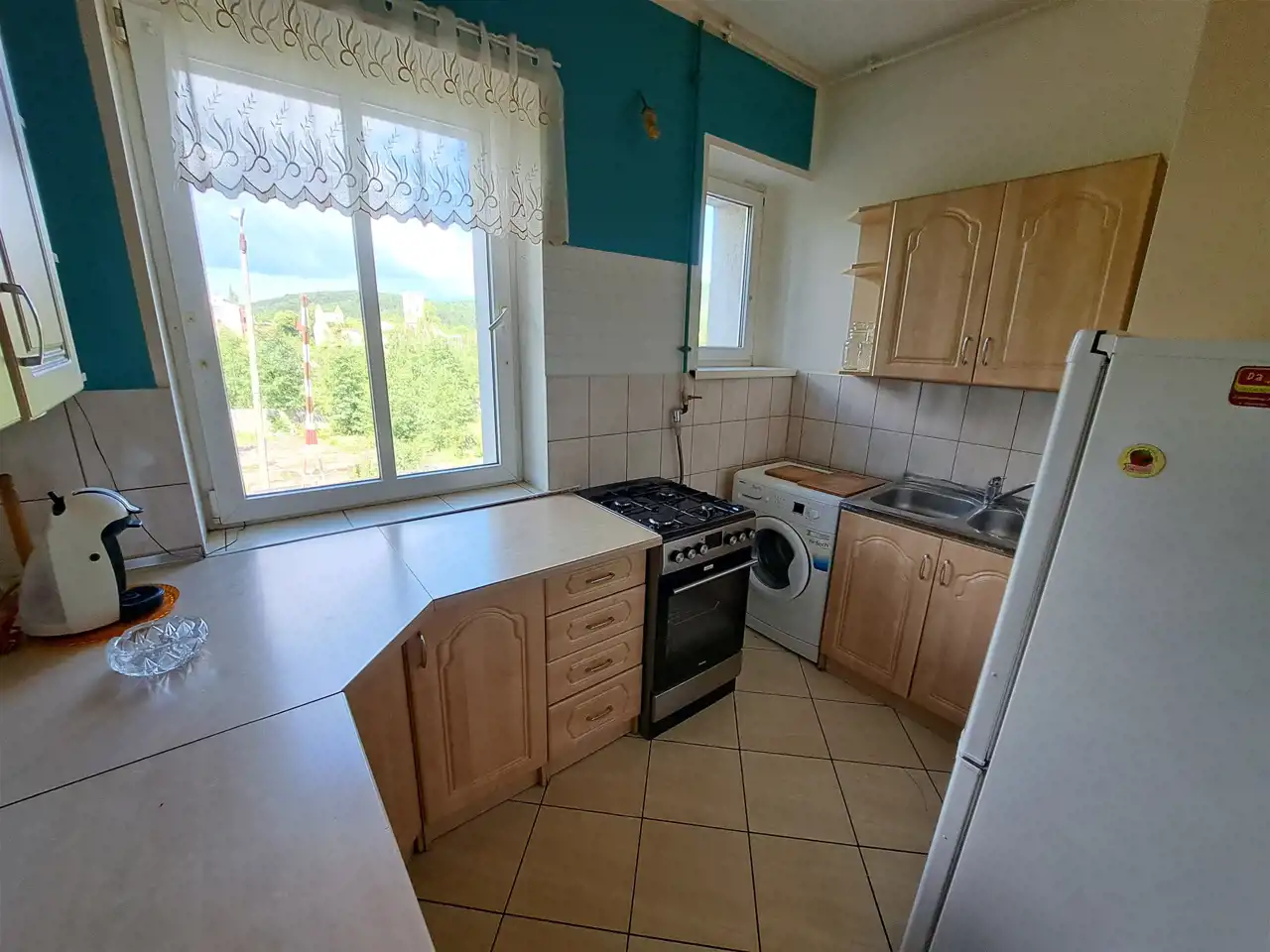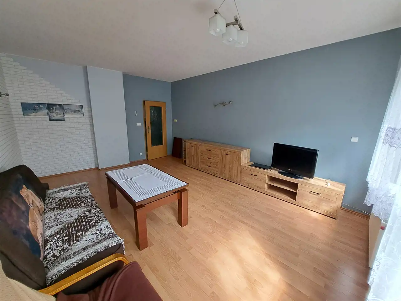Standard nieruchomości do odświeżenia: stolarka okienna PCV, na ścianach gładzie, na podłogach panele i gres, wszystkie instalacje po wymianie.