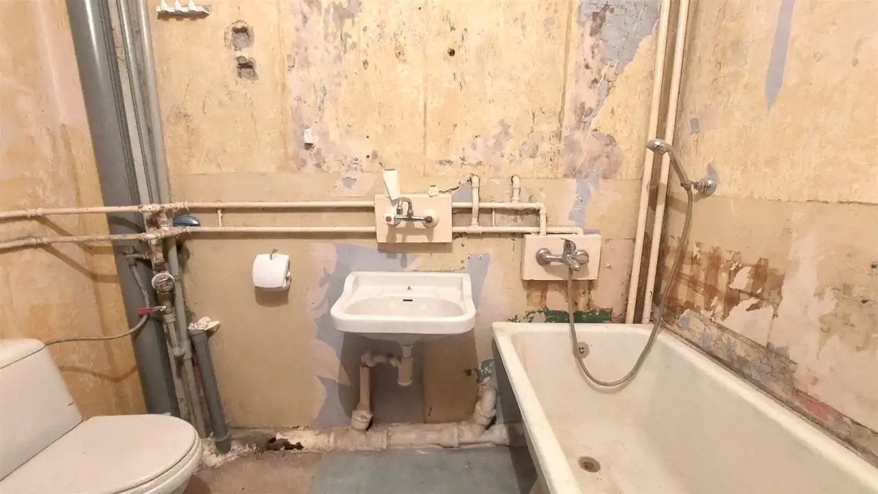 Lokal w stanie - do remontu. Okna pcv, na podłogach wykładziny, na ścianach tapety. Woda ciepła z ciepłowni.