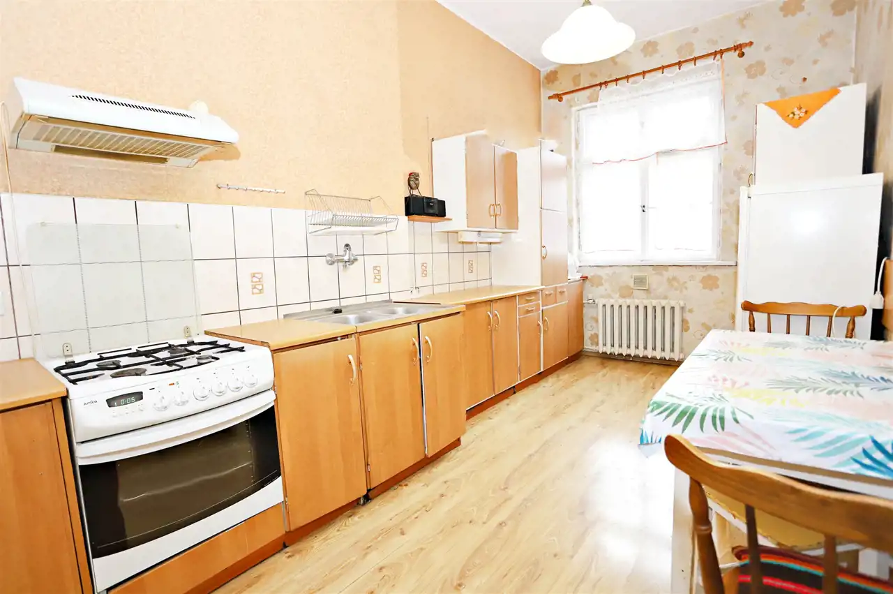 Lokal o powierzchni użytkowej 69,10 m² obejmuje przestronny salon, dużą sypialnię, oddzielną kuchnię, łazienkę z toaletą oraz przedpokój. Ogrzewane ekonomiczną instalacją gazową z piecem dwufunkcyjnym. System funkcjonuje prawidłowo i zapewnia komfort cieplny w sezonie grzewczym. W nieruchomości pozostała oryginalna, poniemiecka stolarka drzwiowa oraz parkiet - te elementy to niewątpliwy "smaczek" dla koneserów oryginalnego wystroju wnętrz.