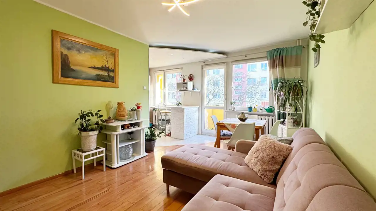 Mieszkanie jest bardzo przyjemnie doświetlone naturalnym światłem, co nadaje mu ciepły i komfortowy klimat. Dodatkowym atutem jest duży balkon,