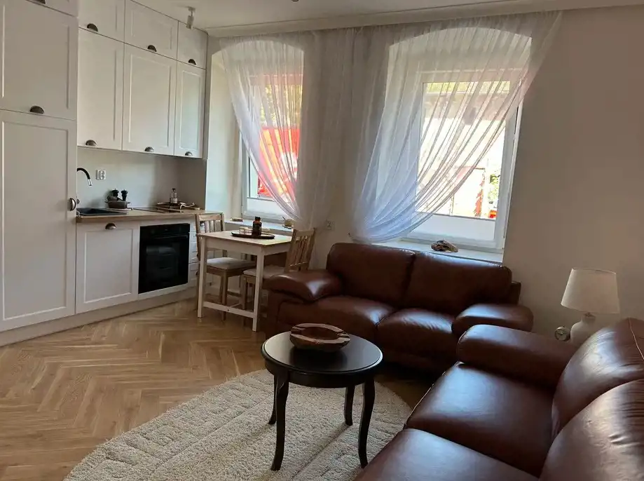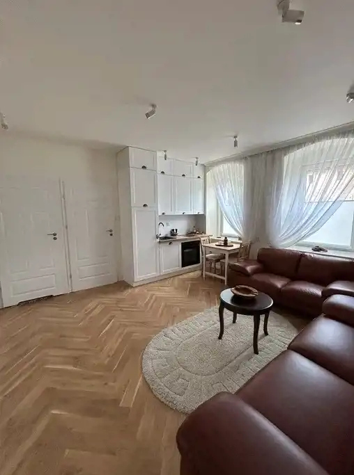 Mieszkanie w bardzo dobrym stanie technicznym. Jasny salon z kuchnią z dwoma oknami. Mieszkanie wyposażone w sprzęty, umeblowane gotowe do wejścia (bez kanap skórzanych).