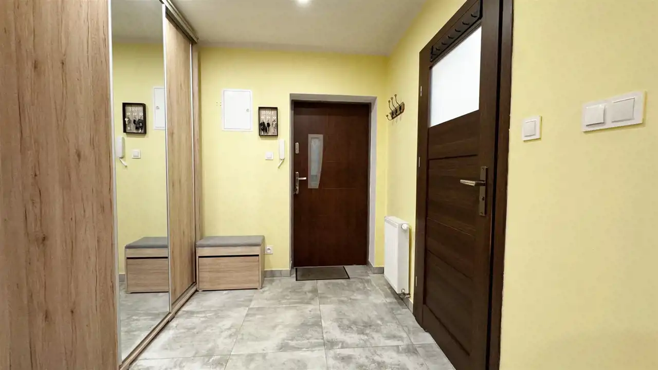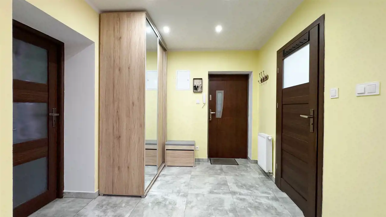 • przedpokój z dużą, zabudowaną szafą