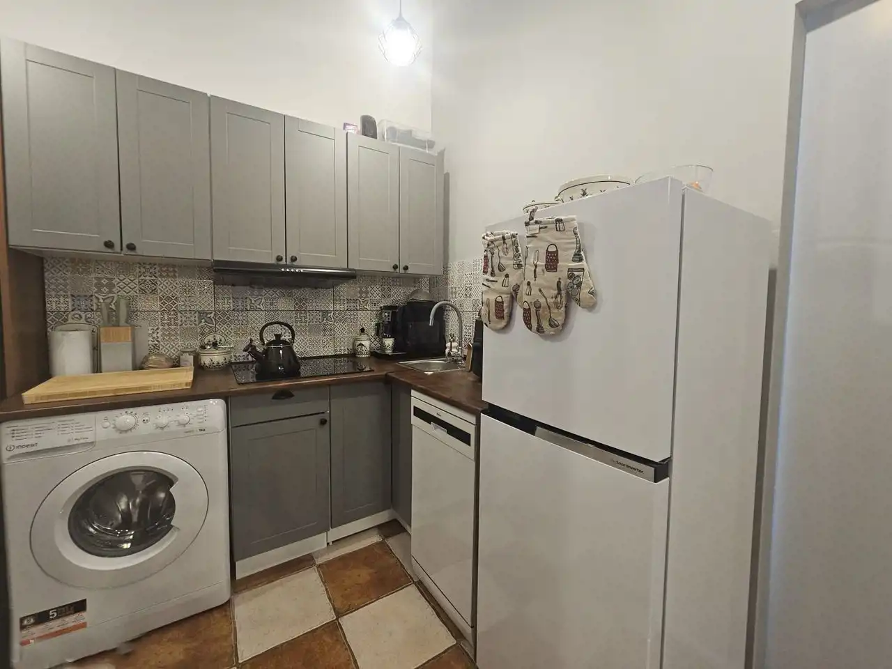 Aneks kuchenny: zabudowa kuchenna, lodówka, zlew, kuchenka, pralka, suszarka do ubrań