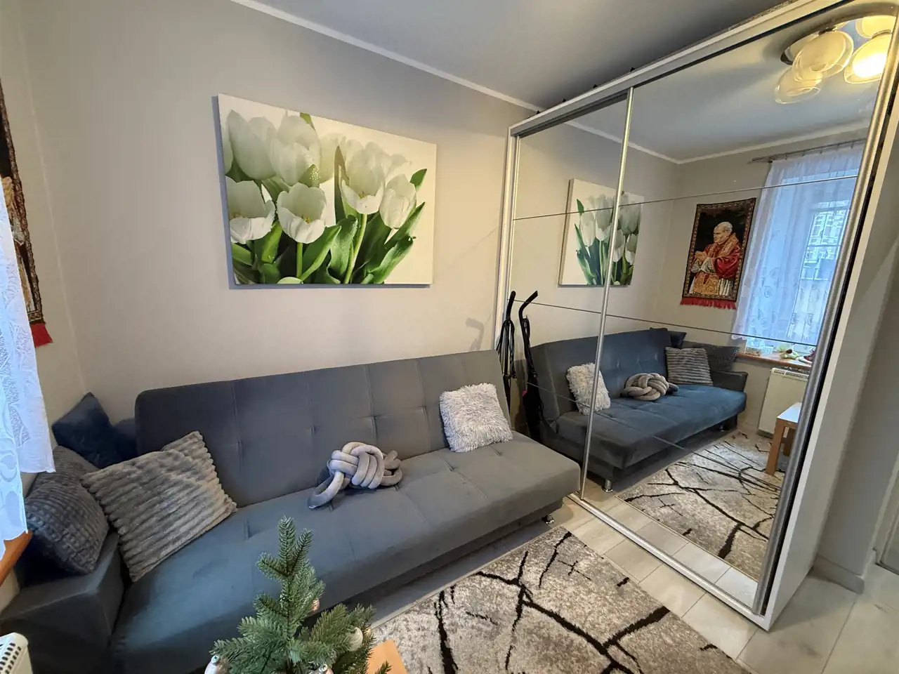 Dodatkowym atutem jest drugi przedpokój (wspólny z sąsiadem) oddzielający mieszkanie od klatki schodowej.