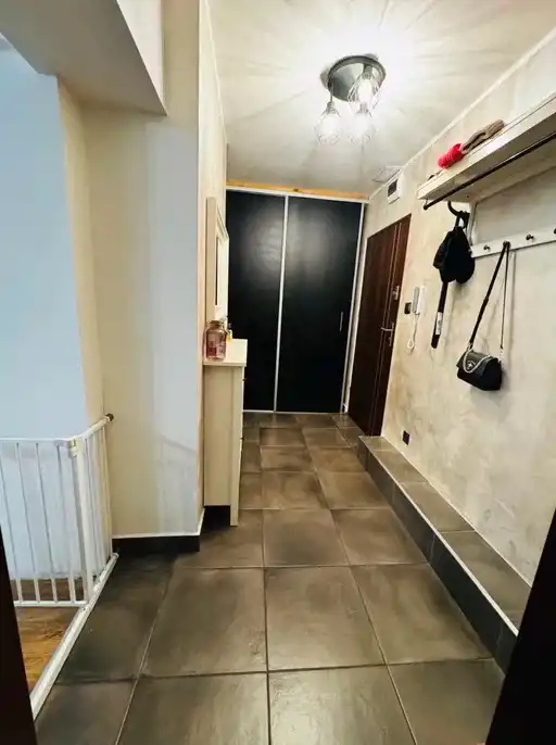Mieszkanie bardzo komfortowe i słoneczne. Przedpokój duży, z szafą w której mieści się pralka, suszarka i regały.