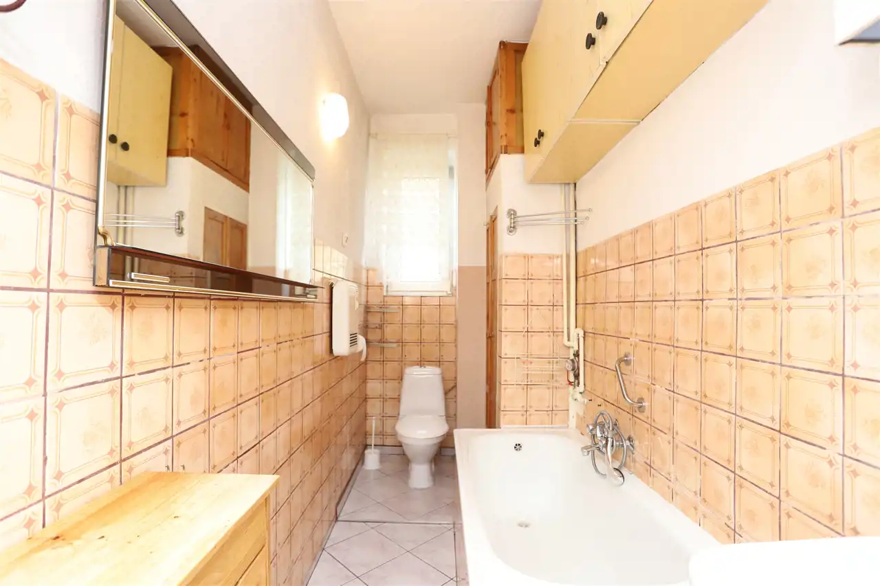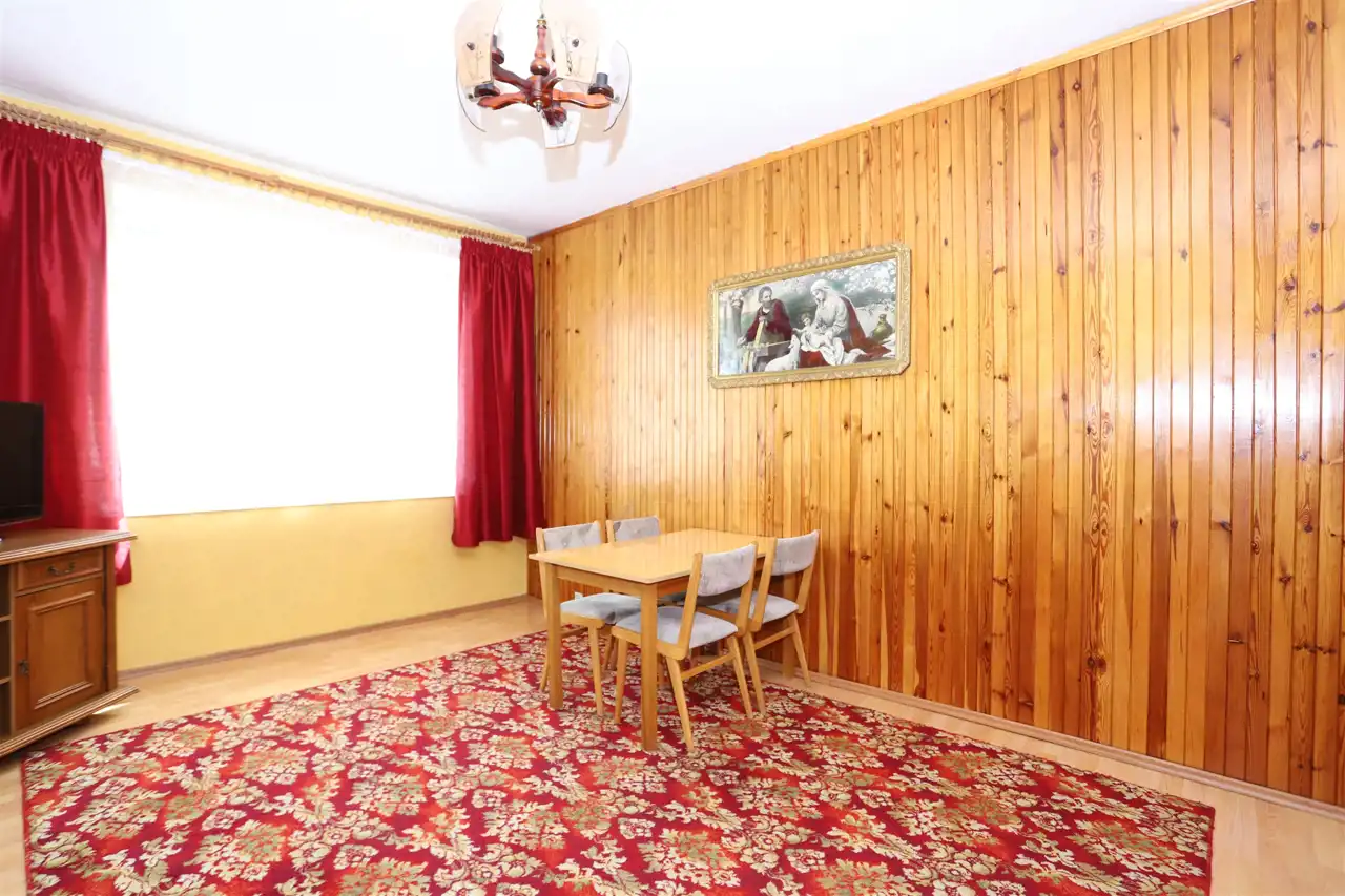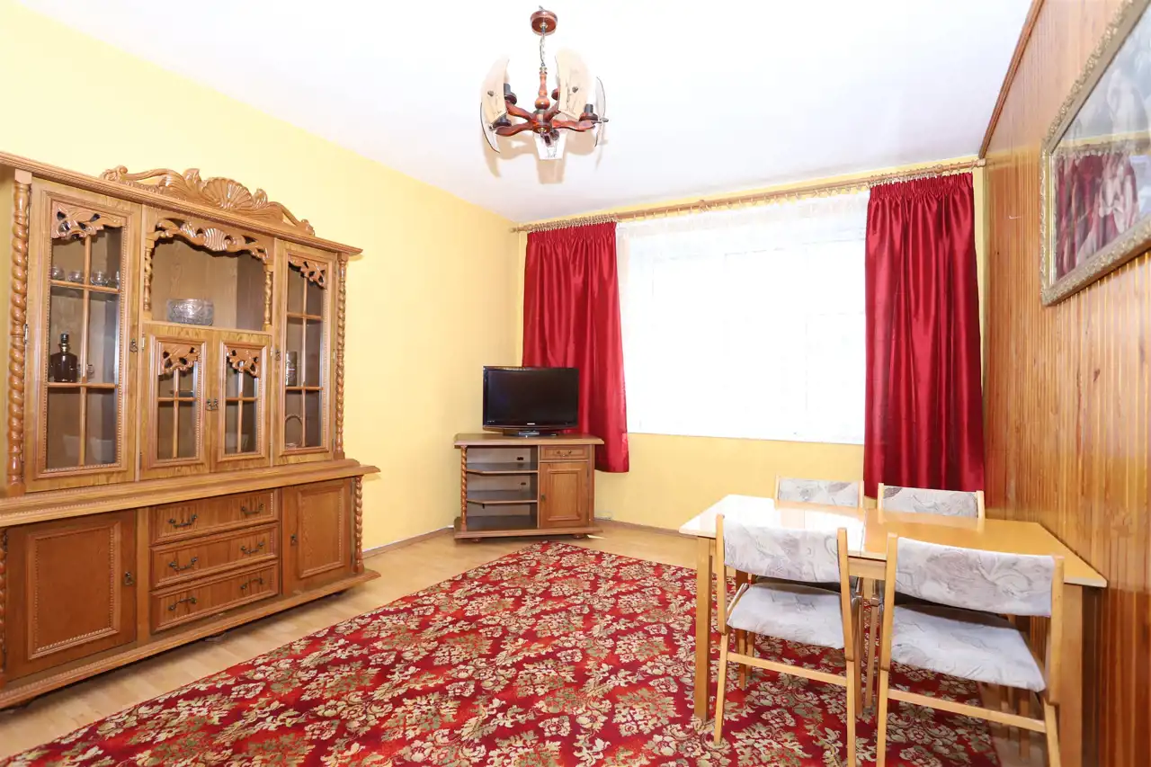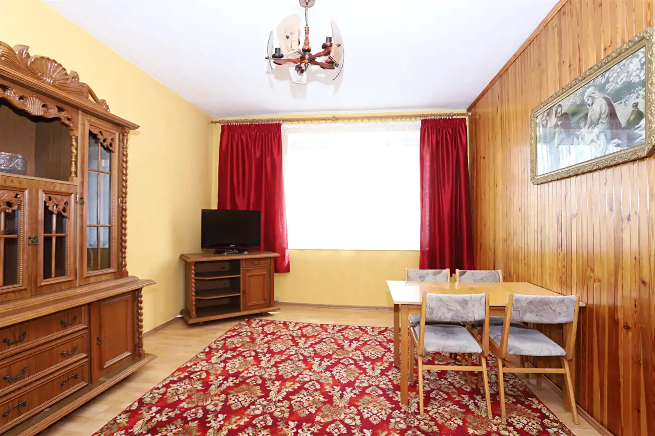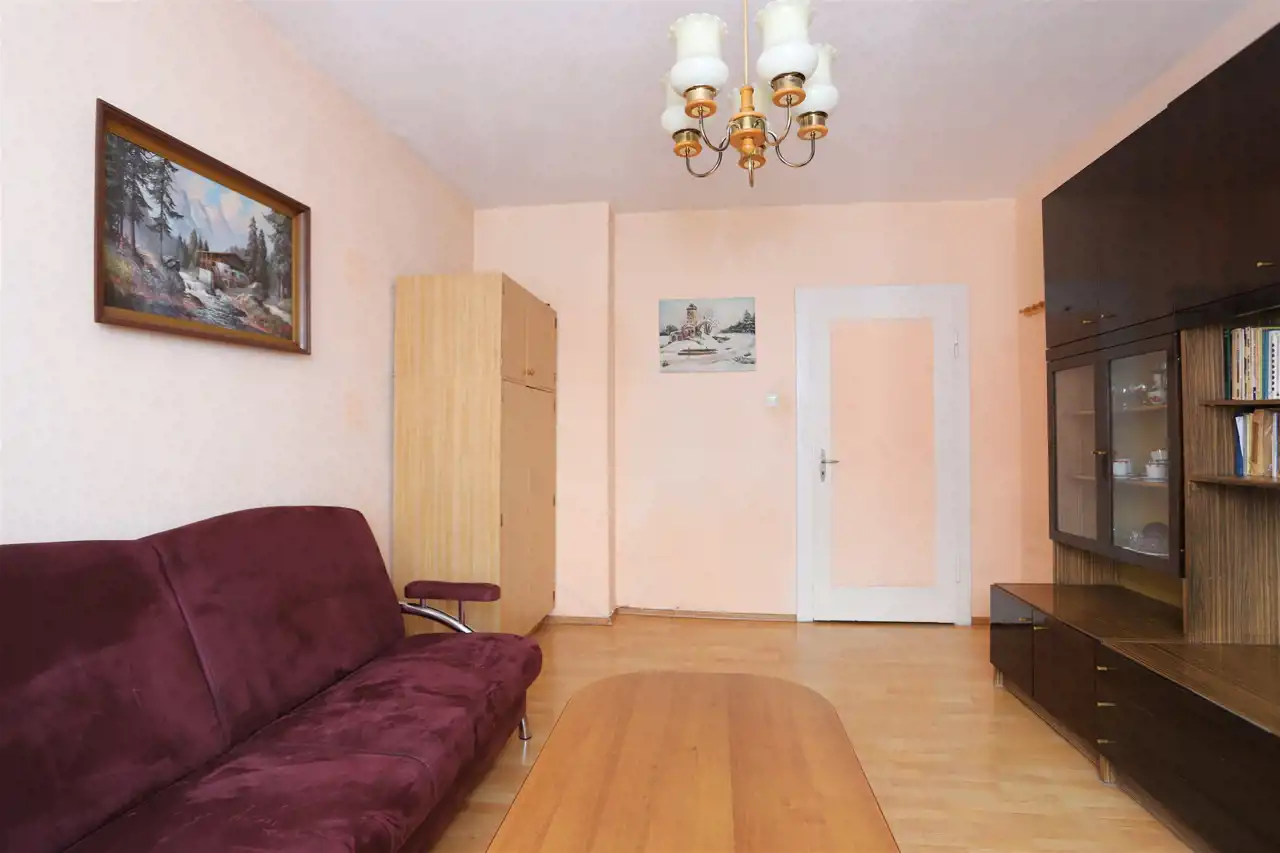 Nieruchomość o powierzchni użytkowej 66,00 m² składa się z jasnej kuchni, przestronnego salonu, dwóch ustawnych i niezależnych sypialni, łazienki połączonej z toaletą oraz funkcjonalnego przedpokoju. Do dyspozycji nowych właścicieli są również dwa pomieszczenia piwniczne oraz część wspólnego strychu. Całość mieszkania ogrzewana jest ekonomicznymi piecami akumulacyjnymi (ogrzewanie elektryczne, dwutaryfowe). Lokal wymaga prac modernizacyjnych, jednak na plus zdecydowanie wyróżniają się okna PCV, które zmniejszają zakres koniecznych inwestycji.