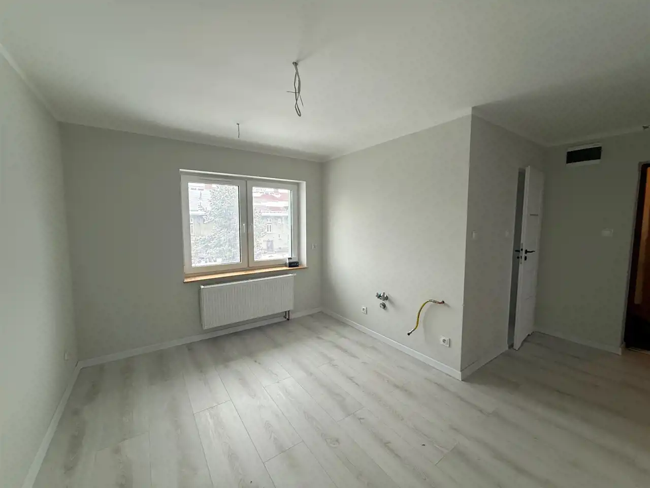 Zamontowane zostały wysokiej klasy panele podłogowe AC5, nowa stolarka drzwiowa, nowe ogrzewanie gazowe (kocioł kondensacyjny z nowym kominem), sufity podwieszone.
