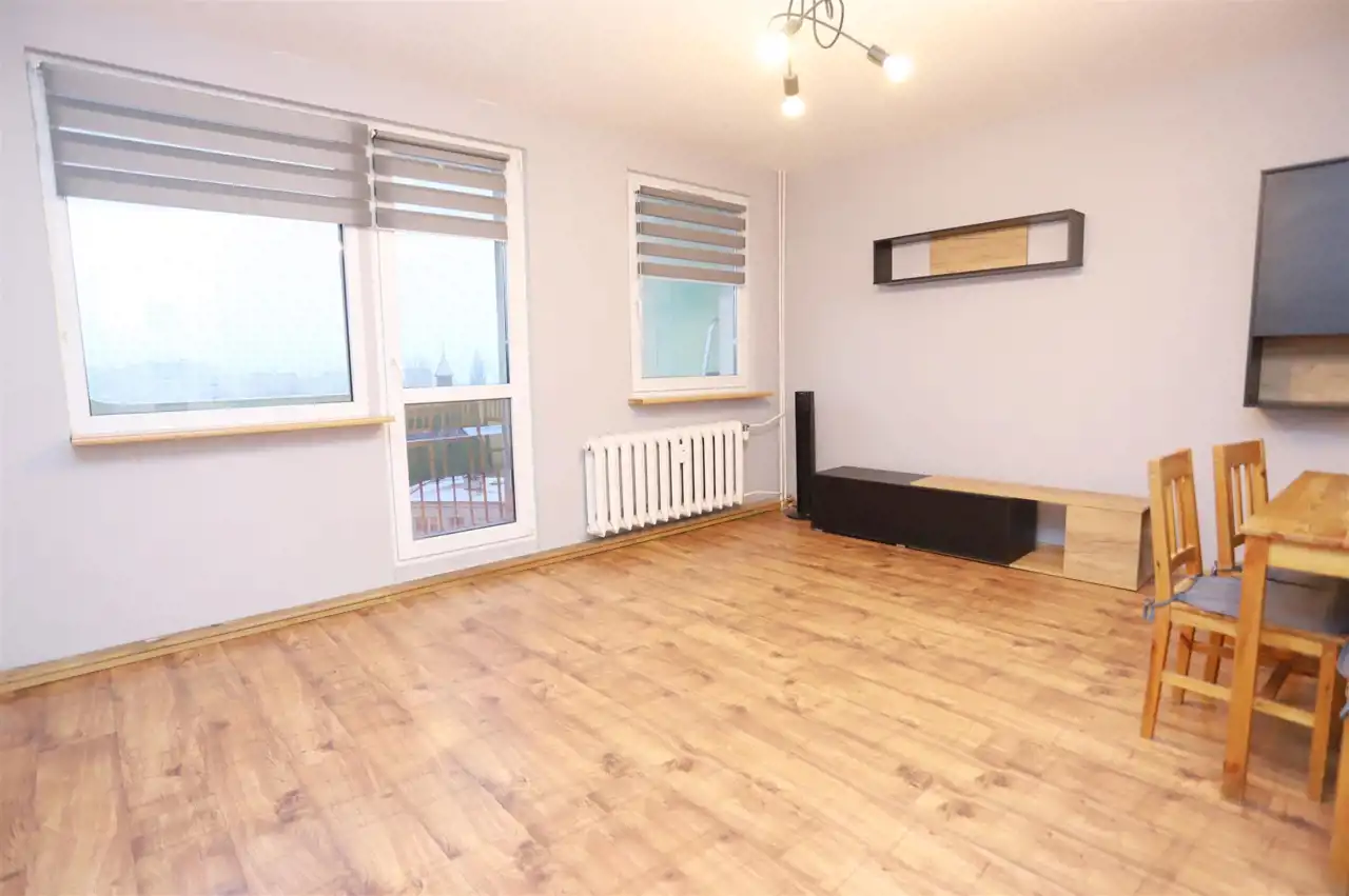 W skład nieruchomości o powierzchni użytkowej 48,5 m² wchodzi ustawny salon z bezpośrednim wyjściem na balkon, przytulna sypialnia, oddzielna jasna kuchnia, łazienka z WC oraz przedpokój. Układ mieszkania jest bardzo praktyczny i daje duże możliwości aranżacyjne, zarówno dla pary, jak i niewielkiej rodziny. Całość ogrzewana przy pomocy wygodnego i ekonomicznego systemu ogrzewania miejskiego.