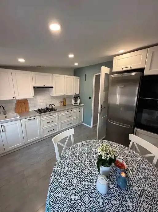 Mieszkanie gotowe do wprowadzenia jasne i słoneczne. Lokal nowocześnie i komfortowo urządzony. Panele na podłogach, ściany gładkie. Kuchnia ładna biała wyposażona w sprzęty AGD, które zostają.