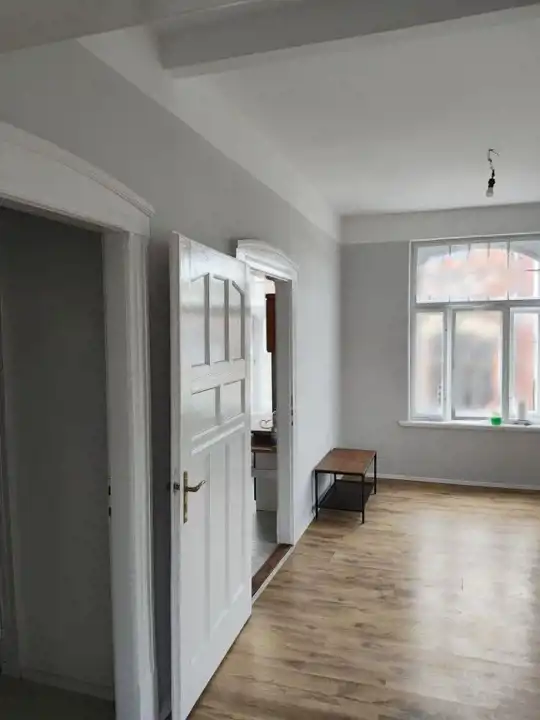 Oryginalna stolarka drzwiowa, podłogi panele i gres.