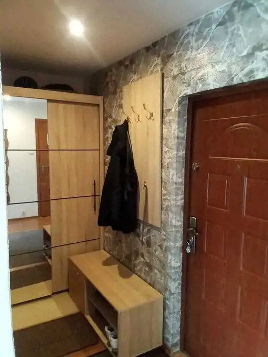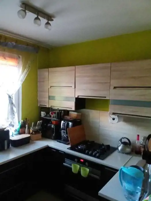 W cenie mieszkania jest kuchnia w zabudowie ze sprzętem szafa komoda i łóżko w sypialni.