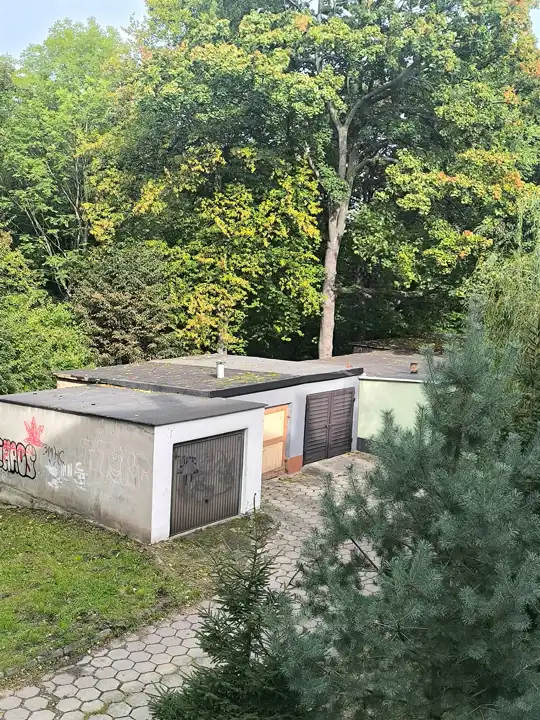 Mieszkanie położone jest w spokojnej części dzielnicy Nowe Miasto, przy bocznej, cichej uliczce. W najbliższej okolicy znajduje się Park Sobieskiego, stadion, hala lekkoatletyczna, a także liczne sklepy, piekarnia oraz szkoła. Dojazd do centrum jest szybki i wygodny, a swobodne parkowanie samochodu możliwe jest zarówno na ulicy, jak i w garażu (powierzchnia 20,44 m2) znajdującym się na podwórku.