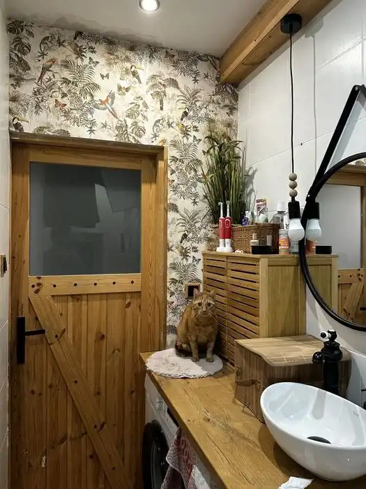 Z sypialni wydzielono garderobę. Dodatkowo, pod domem stoi prywatny garaż o powierzchni 24 m². Podwórko jest zamykane bramą przesuwną, co daje dodatkową ochronę. Jest też zielona przestrzeń pod budynkiem, z miejscem na grilla.