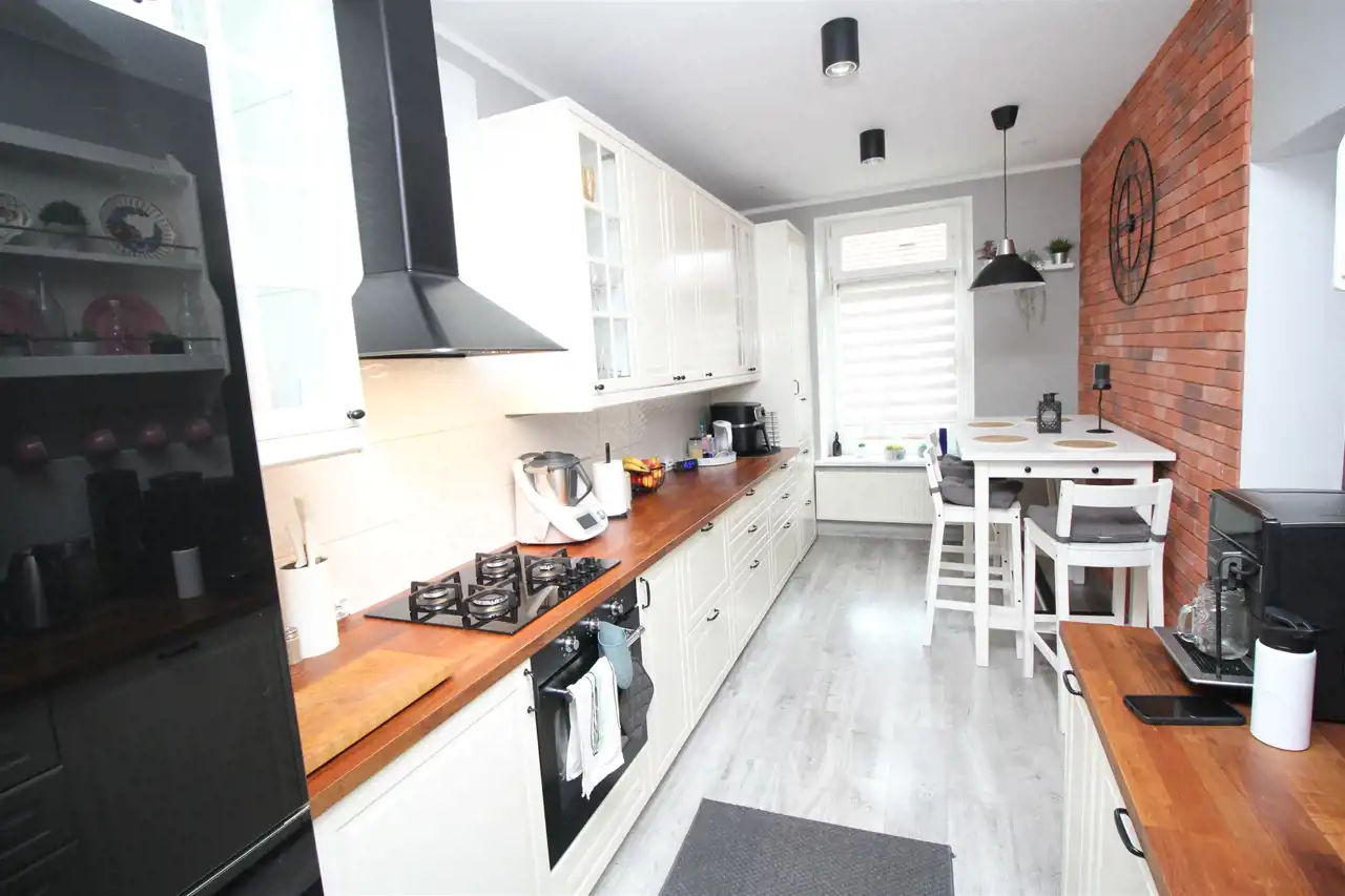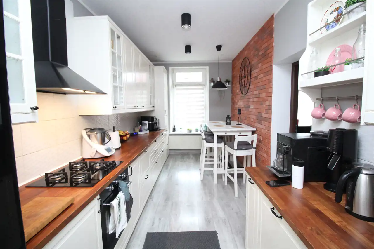 OFERT NA WYŁĄCZNOŚĆ. Na sprzedaż przytulne mieszkanie w górnej części Sobięcina o powierzchni 78 m2 wraz z dwoma piwnicami 26m2 oraz strych i pomieszczenie na półpiętrze. Położony na pierwszym piętrze lokal składa się z dwóch bardzo dużych pokoi, kuchni z oknem i stołem jadalnym, łazienki z wc i oknem ( wanna i prysznic), dwóch przedpokoi z czego jeden z bardzo dużą i pojemną szafą. W mieszkaniu na ścianach gładzie i tynk ozdobny, na podłogach panele i kafle, okna PCV, ogrzewanie gazowe - piec dwufunkcyjny oraz kominek z nawiewami, wymienione instalacje. Budynek po remoncie dachu i klatki schodowej wraz z instalacjami, monitoring na zewnątrz i wewnątrz budynku. Całość posesji ogrodzona, brama otwierana automatycznie. Nieruchomość gotowa do zamieszkania bez dodatkowych nakładów. Do mieszkania przynależy ogródek. Dobra lokalizacja. W pobliżu las, niska zabudowa, komunikacja miejska. W cenie mieszkania stała zabudowa ze sprzętem. Możliwość pozostawienia pozostałych mebli według ustaleń. Cena 339 tyś- do negocjacji. Serdecznie polecam i zapraszam na prezentację. Więcej informacji Anna Dąbrowska tel. 722 27 27 15 lub email: anna@akwadratnieruchomosci.pl