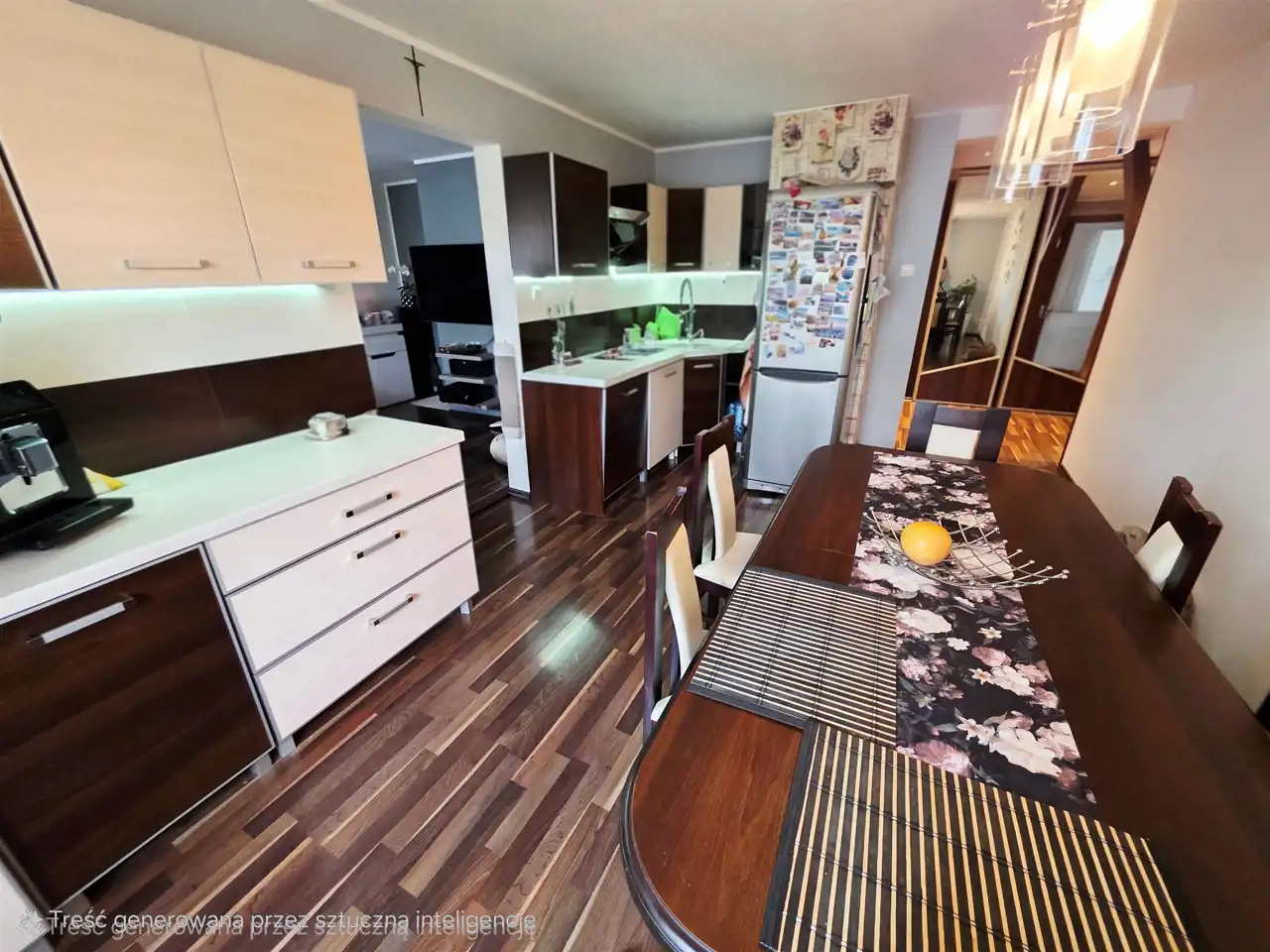 Składa się z salonu, dużej kuchni, dwóch pokoi, łazienki z wc i przedpokoju, o łącznej powierzchni użytkowej 77,10 m2. Do mieszkania przynależy komórka i piwnica. Dodatkowo dzierżawiona komórka na strychu ok. 4m2 (opłata 12zł, możliwość dalszej dzierżawy).