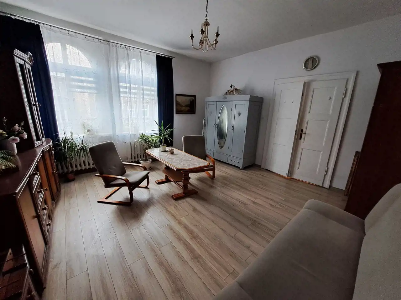 Standard mieszkania do własnej aranżacji : nowa stolarka okienna PCV, oryginalne drewniane drzwi wewnętrzna, drzwi wejściowe nowego typu, na podłogach parkiet i panele, na ścianach gładzie i tapety.
