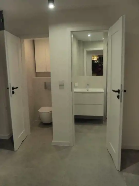 - Funkcjonalny układ: Dwa oddzielne pokoje, salon + aneks kuchenny, oddzielna toaleta i łazienka z prysznicem.