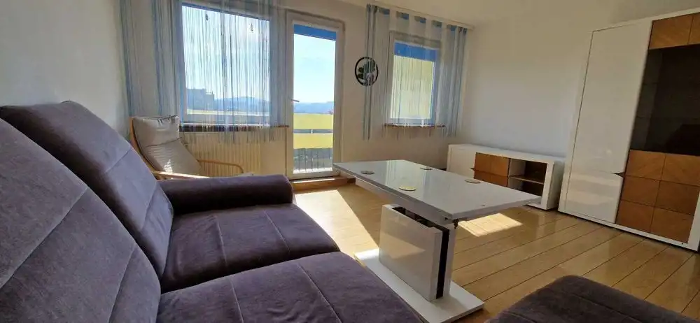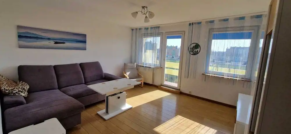 - Duży, jasny salon z balkonem