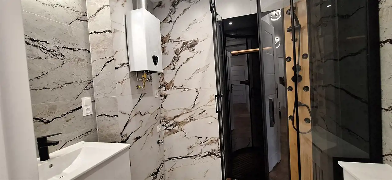 Łazienka z kabiną prysznicową.