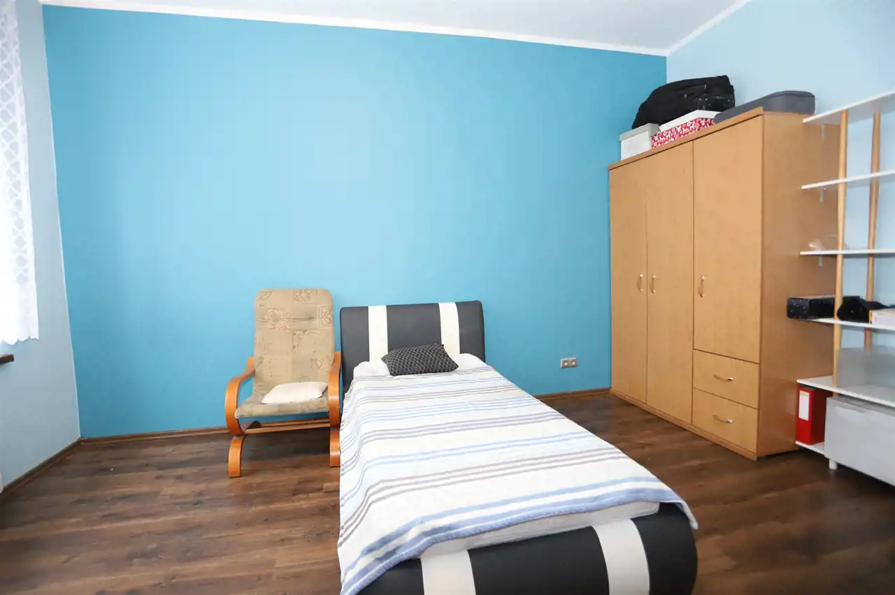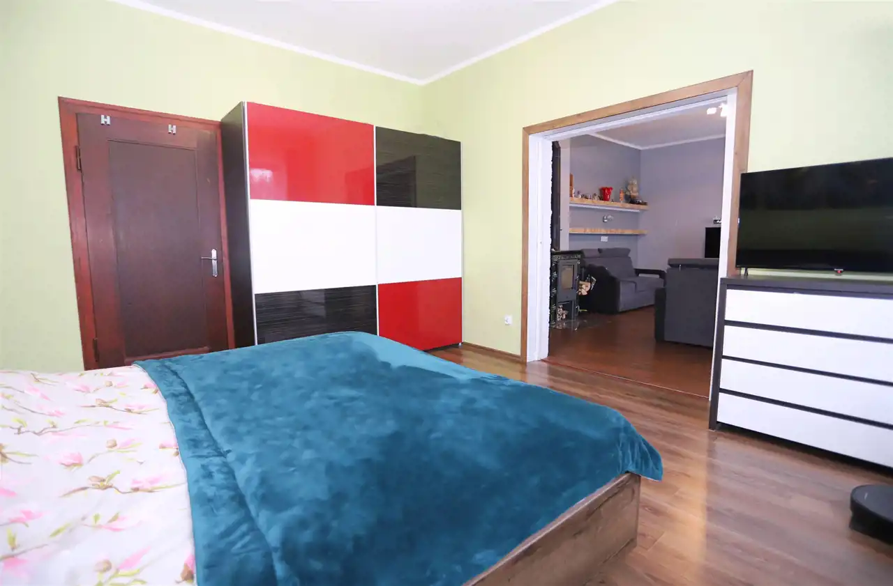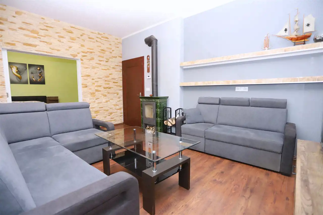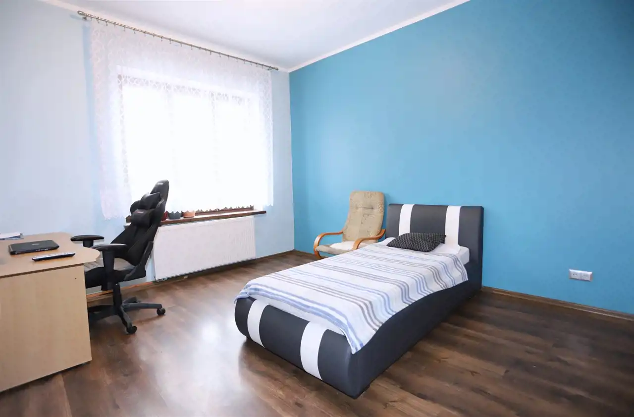 W skład tej interesującej nieruchomości o powierzchni 87,1 m² wchodzi słoneczny, ustawny salon, dwie niezależne sypialnie (z możliwością podziału jednej z nich na dwa odrębne pomieszczenia), jasna kuchnia ze spiżarką, łazienka z toaletą oraz przedpokój zapewniający dostęp do każdego z pokoi. Mieszkanie ogrzewane jest komfortowym ogrzewaniem gazowym, a dodatkowy klimat i realne oszczędności zapewnia kominek w salonie. Do lokalu przynależą dwie piwnice o powierzchni 2 m² i 6 m². Obecni właściciele korzystają również z pobliskiego ogrodu, którego użytkowanie można przejąć. W sąsiedztwie znajduje się garaż — opcjonalnie dostępny do zakupu za 55 000 zł.