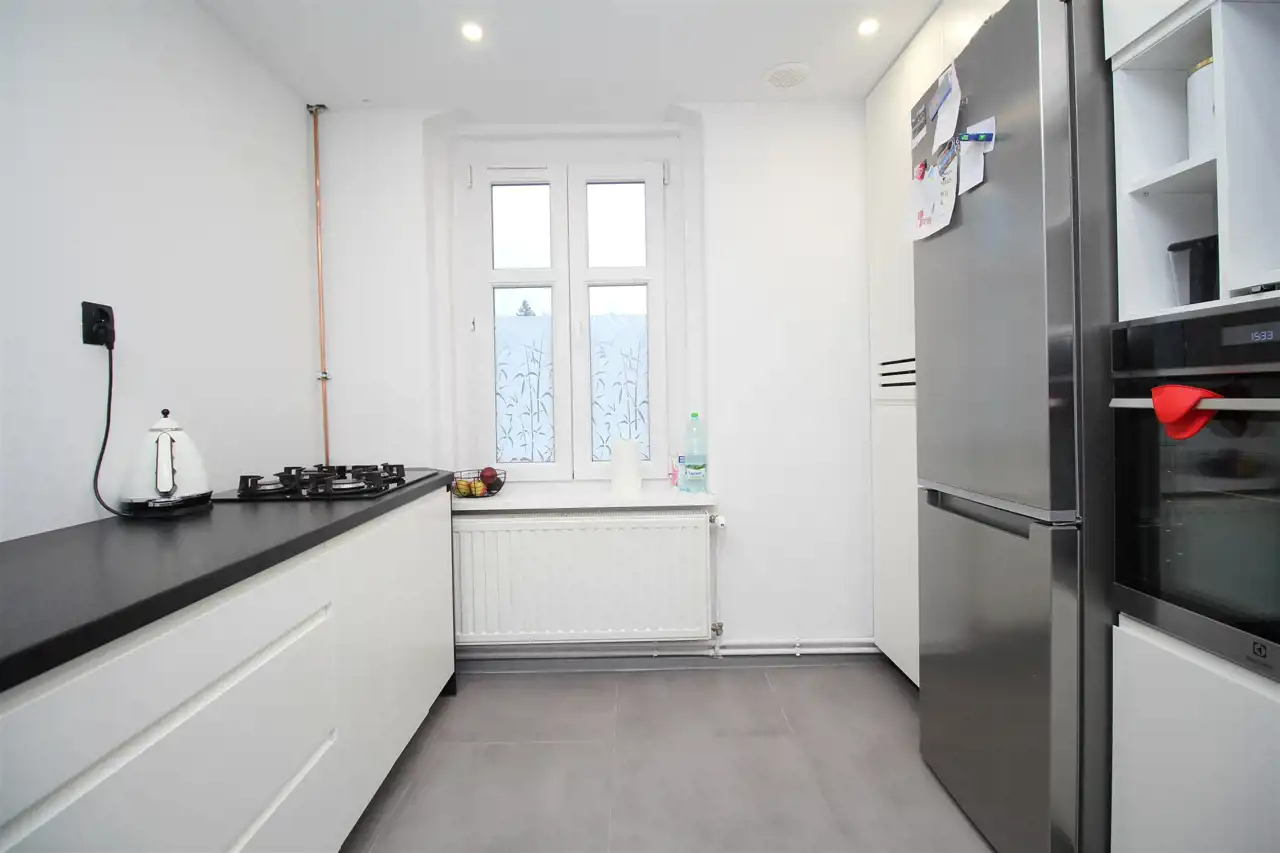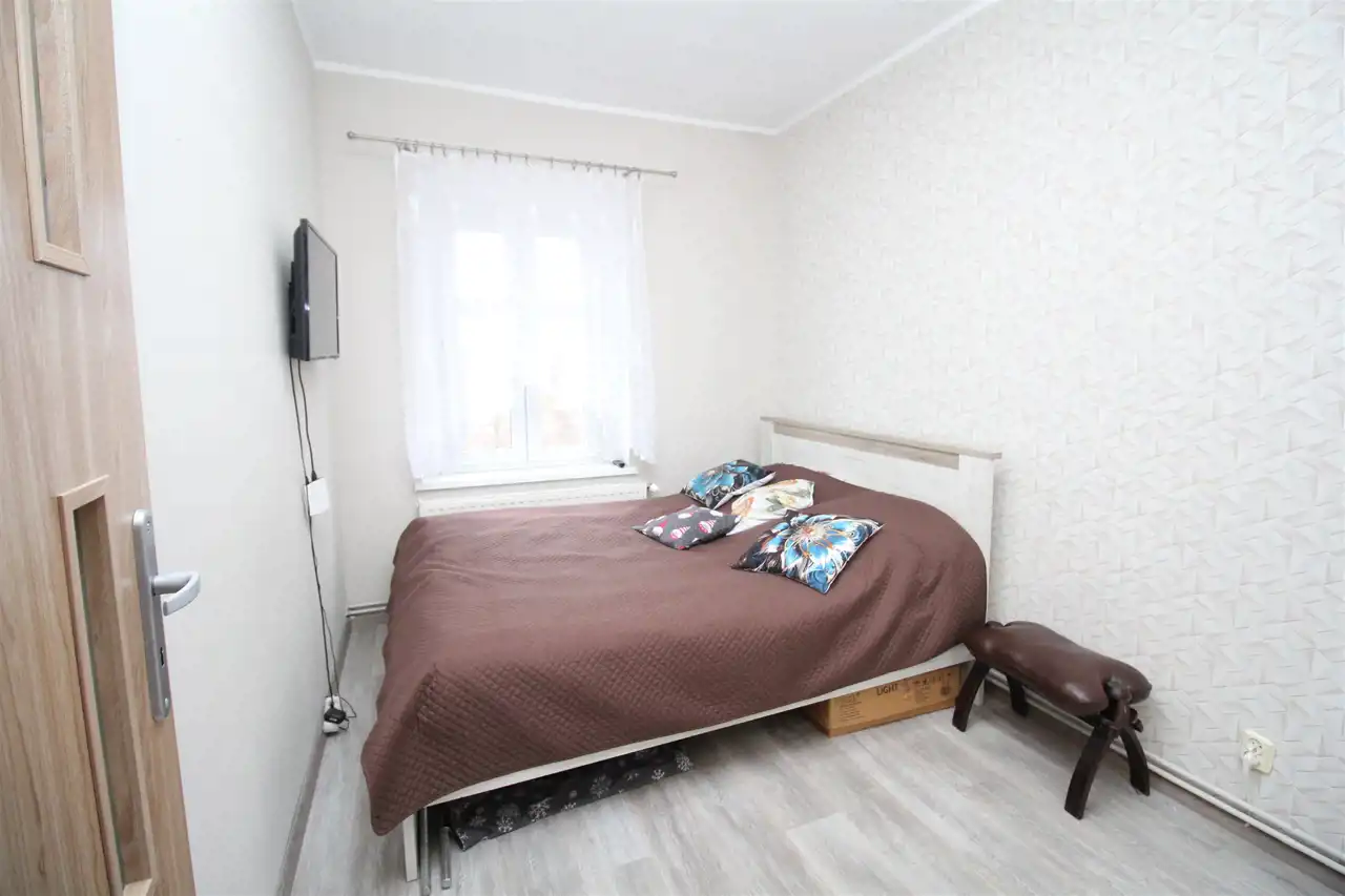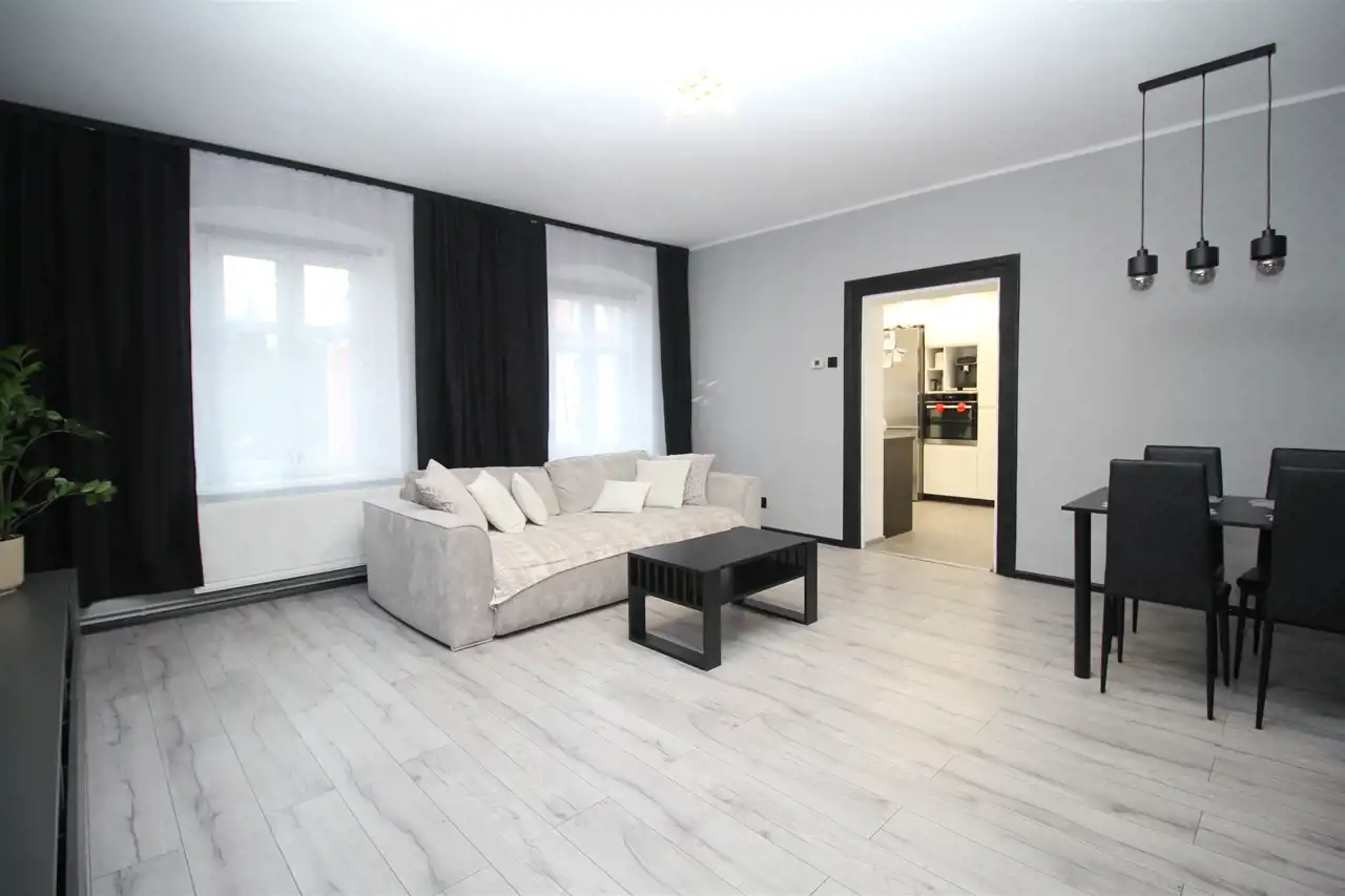 Na sprzedaż słoneczne mieszkanie z dzierżawionym ogródkiem w bezpośrednim sąsiedztwie kamienicy. Położony na drugim piętrze lokal o powierzchni 70m2 składa się z dużego ustawnego salonu, dwóch sypialni ( w jednej szafa w zabudowie), widnej kuchni, łazienki, wc oraz dwóch przedpokoi - w jednym z nich pojemna szafa w zabudowie, a w drugim garderoba. Do mieszkania przynależy piwnica, komórka oraz wspólny strych. Na ścianach gładzie, na podłogach panele oraz płytki ceramiczne. Okna pcv, wymienione wszystkie instalacje. Ogrzewanie gazowe - piec dwufunkcyjny, dodatkowo w łazience ogrzewanie podłogowe. Mieszkanie usytuowane w budynku po termomodernizacji, remoncie dachu i klatki schodowej. Monitoring wewnątrz, jak i na zewnątrz nieruchomości. Możliwość pozostawienia mebli widocznych na zdjęciach. Spokojna okolica, bardzo bliska odległość od Parku Książańskiego, dworca PKP, strefy ekonomicznej oraz bardzo dobry dojazd do Wrocławia. Za budynkiem dużo miejsc parkingowych dla mieszkańców. Cena 399000zł- do negocjacji. Możliwy zakup wyłącznie za gotówkę.