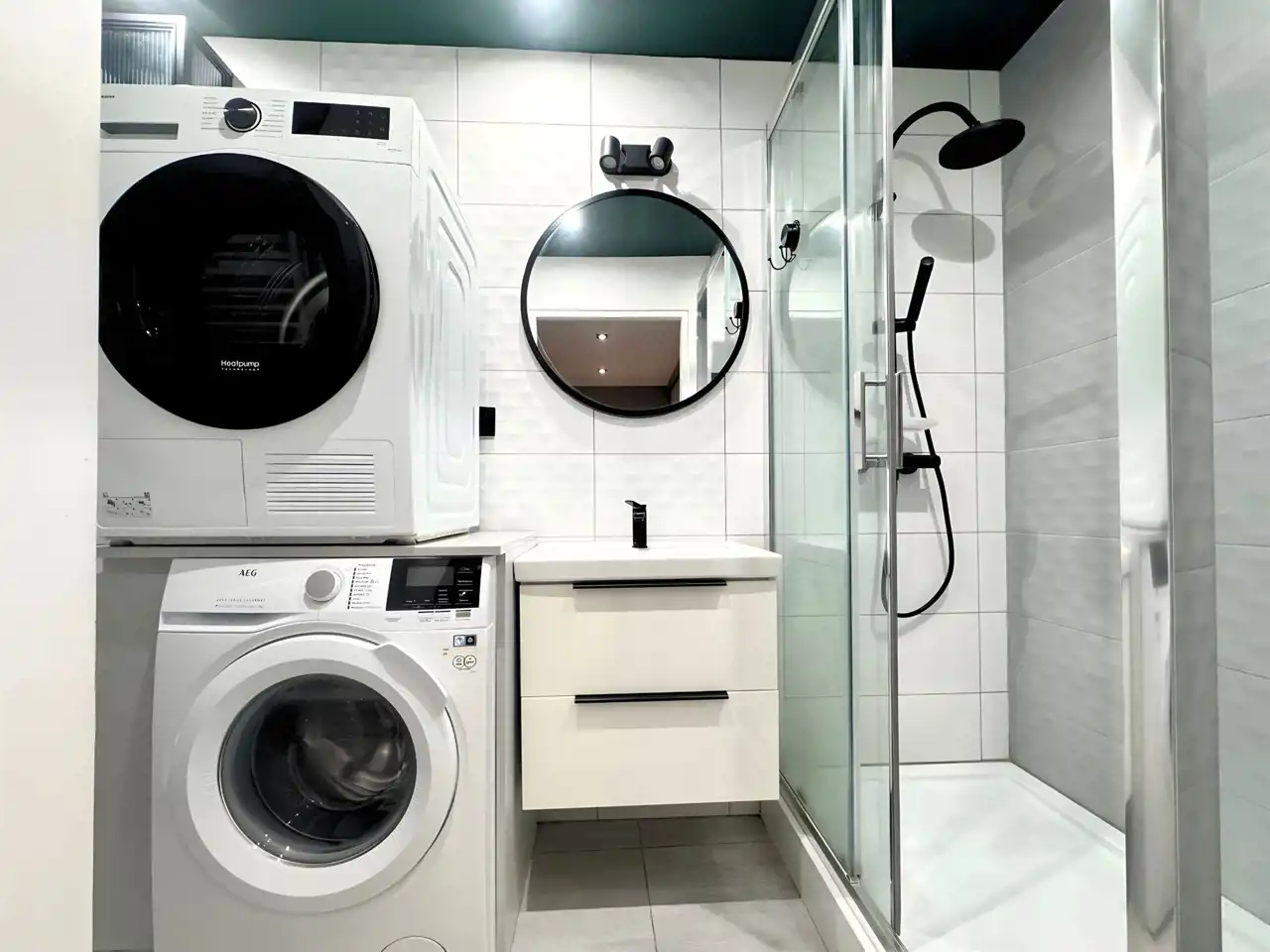 - na podłogach panele oraz kafle,