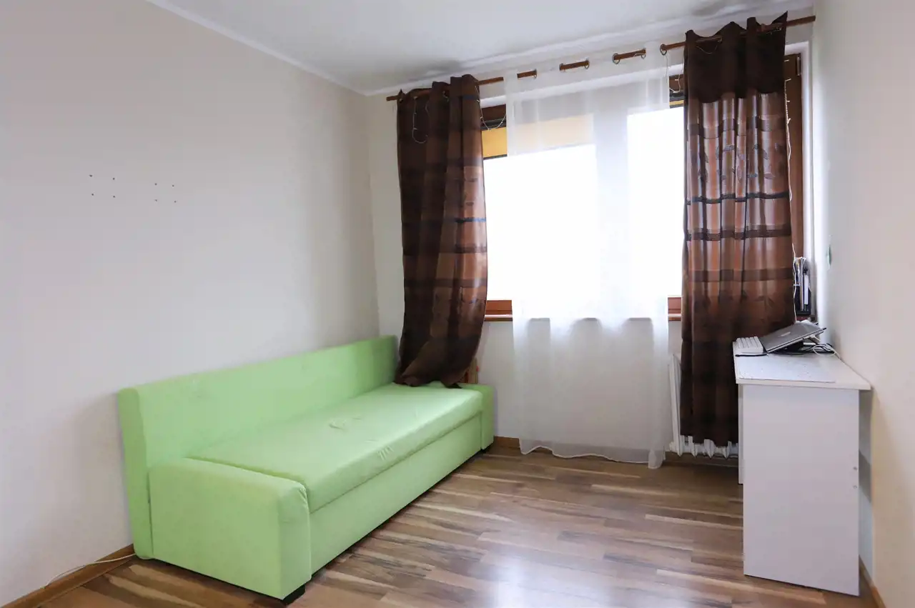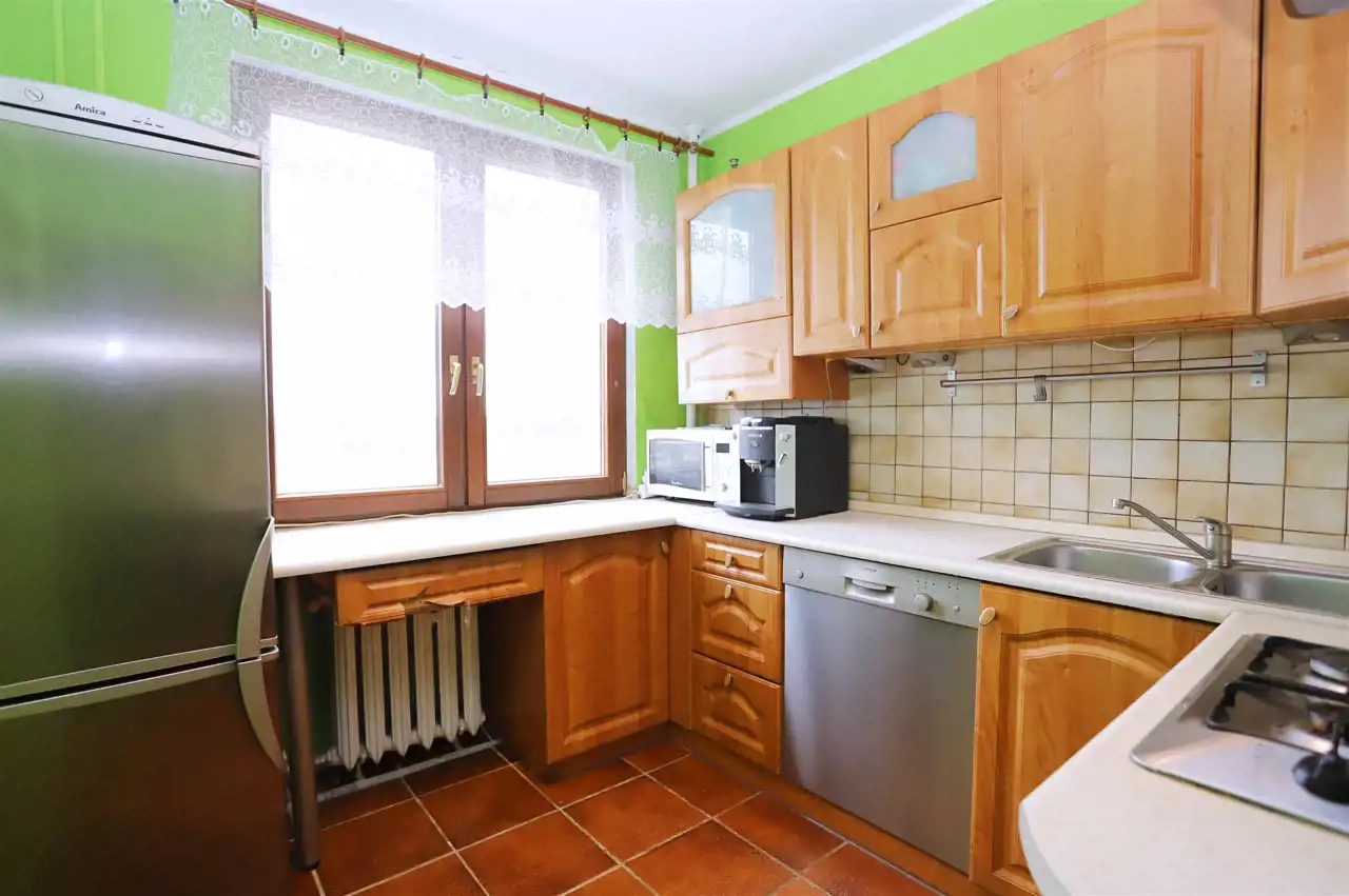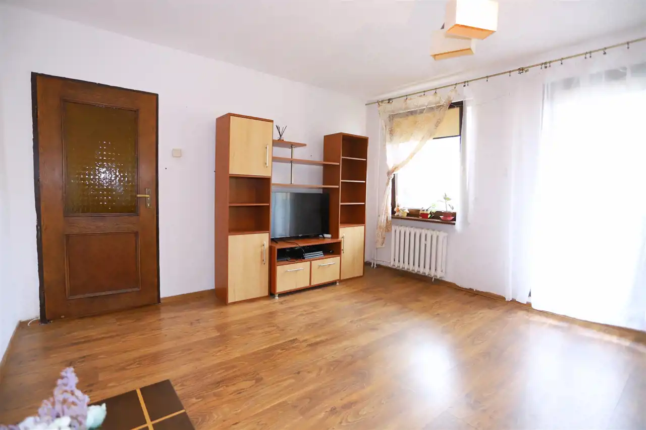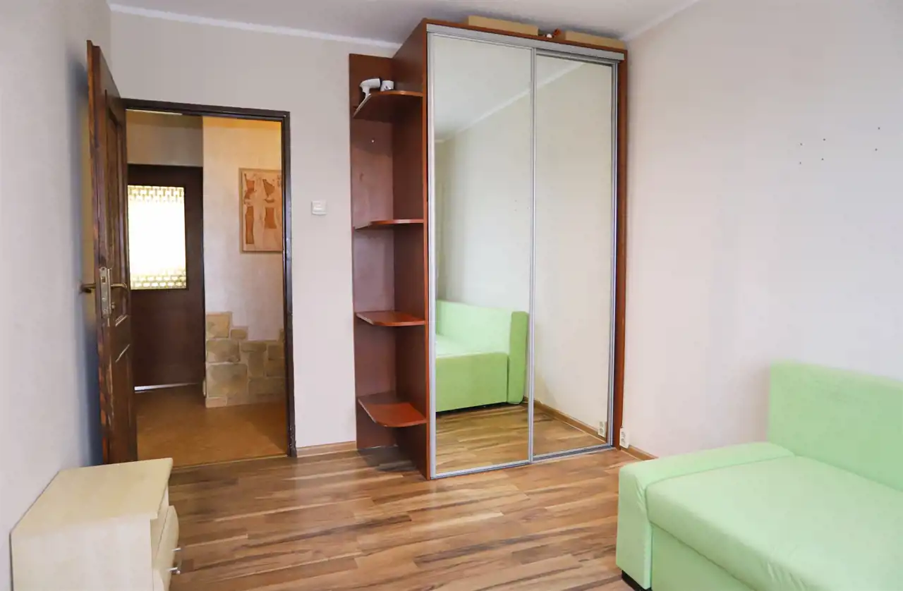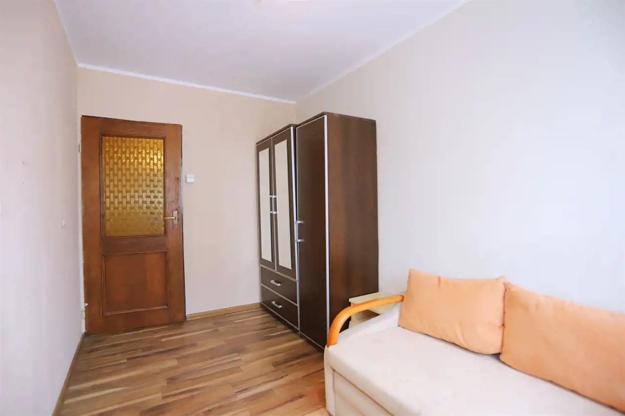 Nieruchomość o funkcjonalnym układzie składa się z ustawnego salonu z bezpośrednim wyjściem na duży balkon, dwóch niezależnych sypialni oraz dodatkowego pokoju, obecnie zaaranżowanego jako pokój dziecięcy. W mieszkaniu znajduje się również jasna kuchnia, łazienka, oddzielne WC oraz przedpokój zapewniający wygodny dostęp do wszystkich pomieszczeń. Do nieruchomości przynależy piwnica.