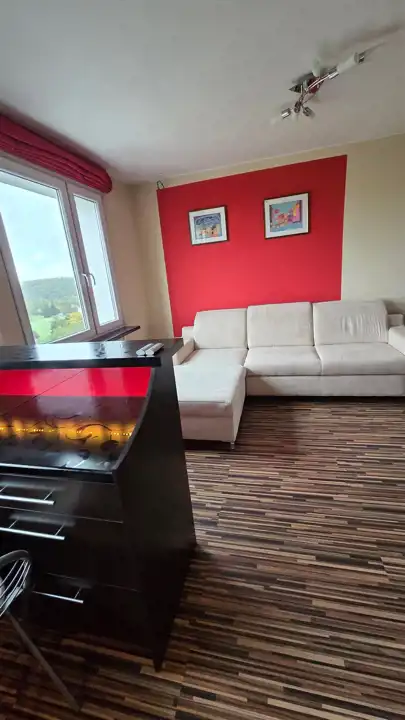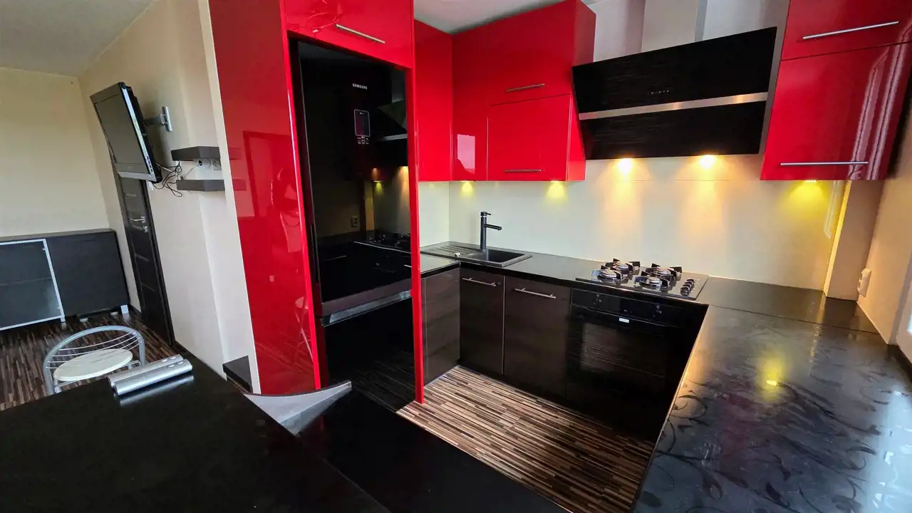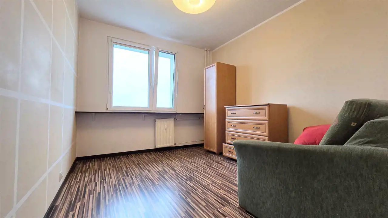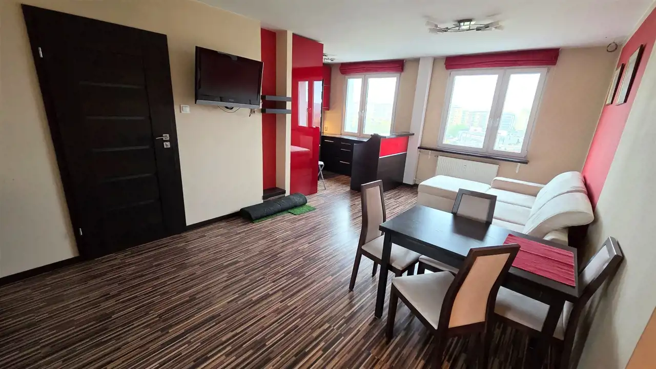 Wysoka kondygnacja zapewnia piękne widoki z okien. Wyburzone ściany i zmieniony układ mieszkania, sprawiają, że wydaje się dużo większe niż w rzeczywistości. Jest to zdecydowanie godne obejrzenia mieszkanie.