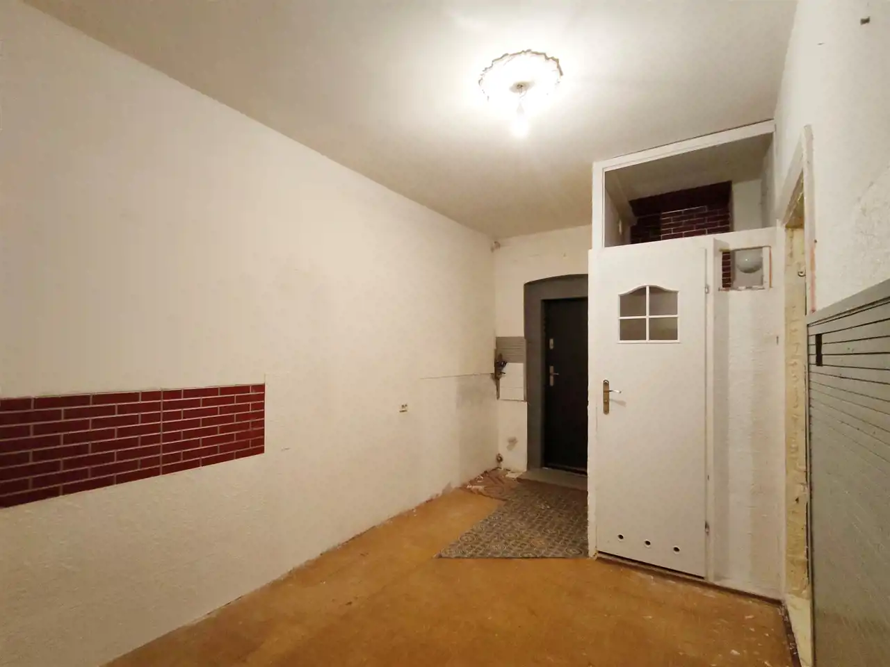 Rozkład: Kawalerka: Pokój, osobno kuchnia i łazienka. Do mieszkania należą dwie piwnice oraz toaleta na parterze.