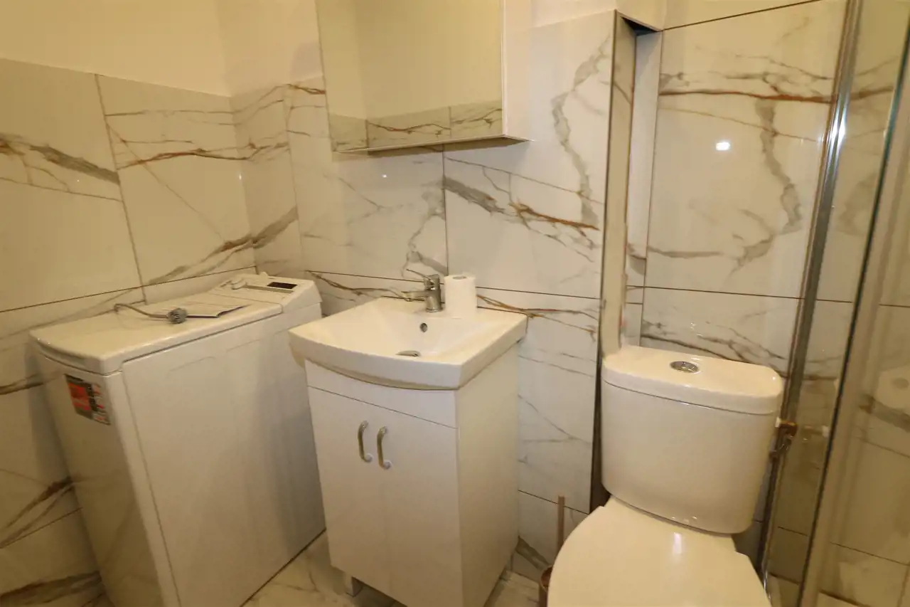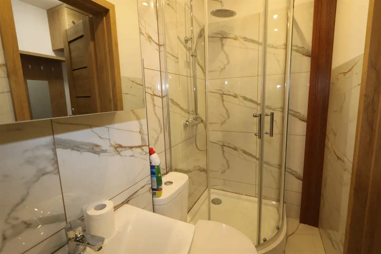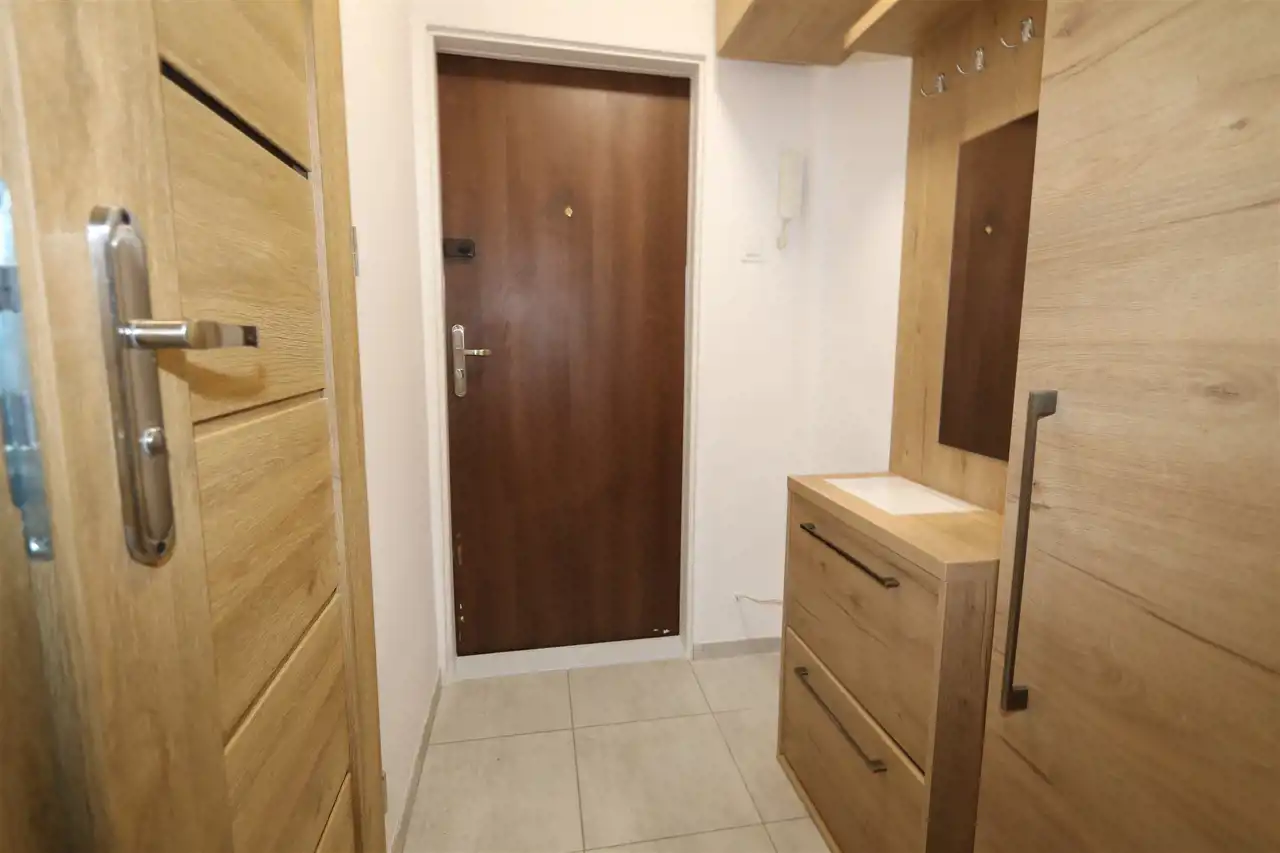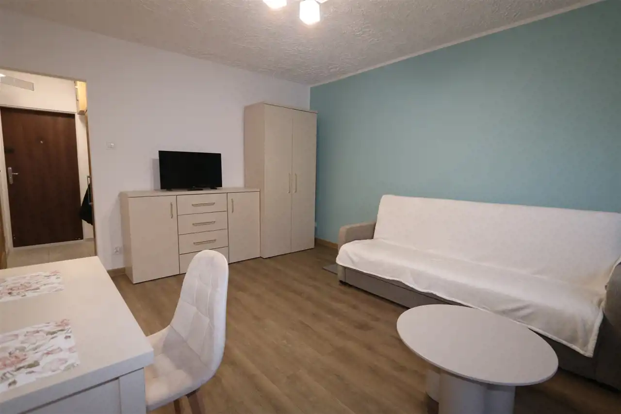 Mieszkanie w pełni wyposażone - pralka, lodówka, rozkładana wersalka, telewizor, meble jak na zdjęciach. Wszystko jest nowe jeszcze nieużywane.