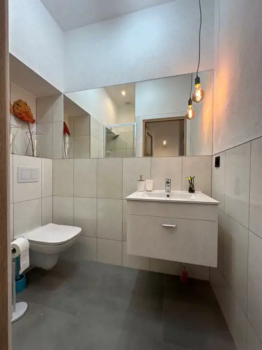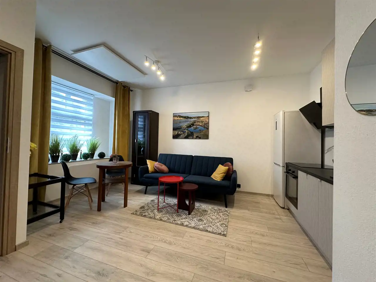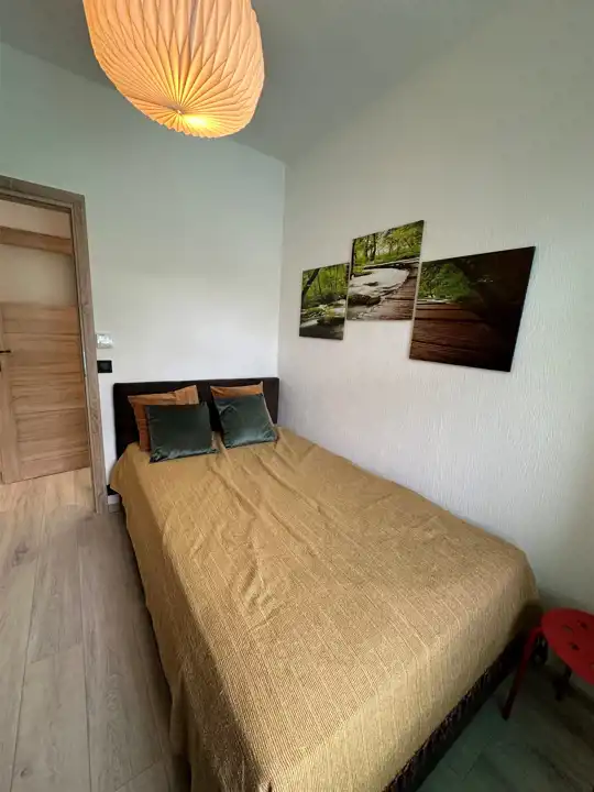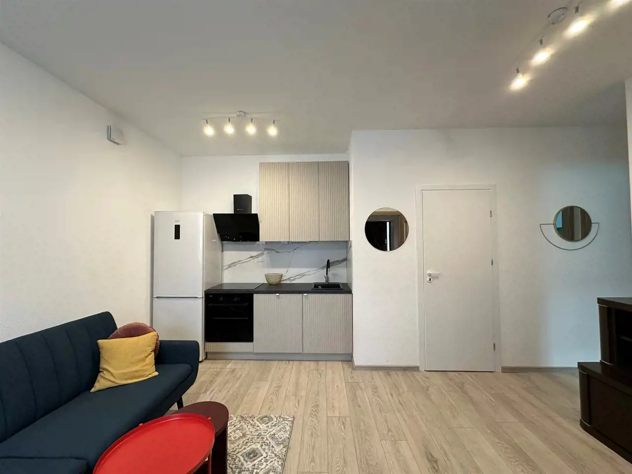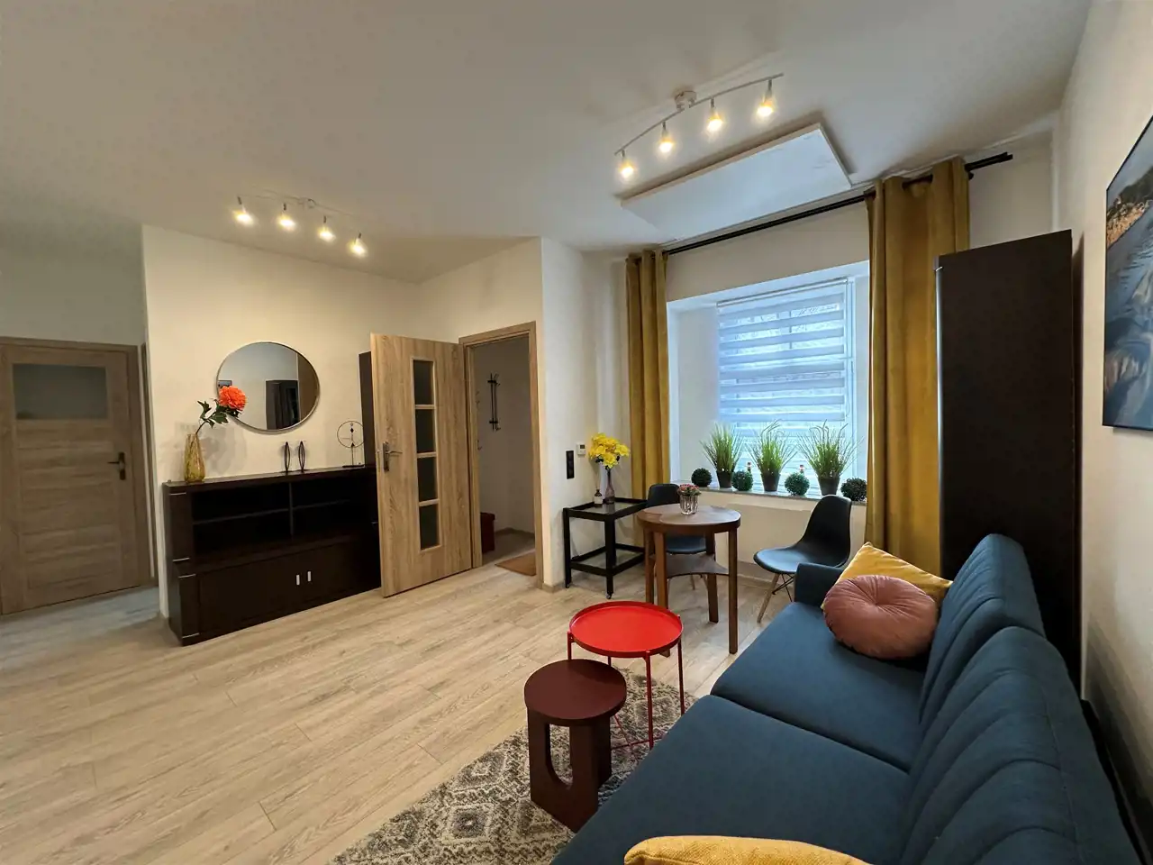 Mieszkanie po kapitalnym remoncie , składa się z : salonu z aneksem kuchennym ( lodówka, meble , płyta elektryczna i piekarnik na wyposażeniu ), sypialni , łazienki z wc, garderoby i przedpokoju.
