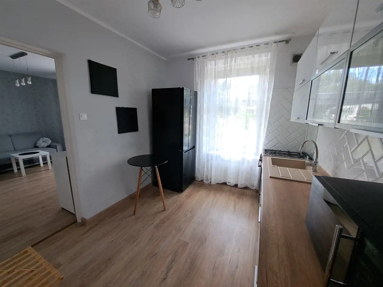 Standard mieszkania: stolarka okienna PCV, na ścianach gładzie i tapeta ozdobna, na podłogach panele i gres, instalacje po wymianie.
