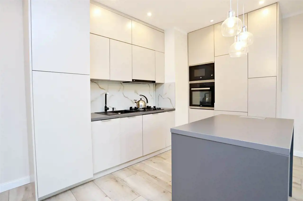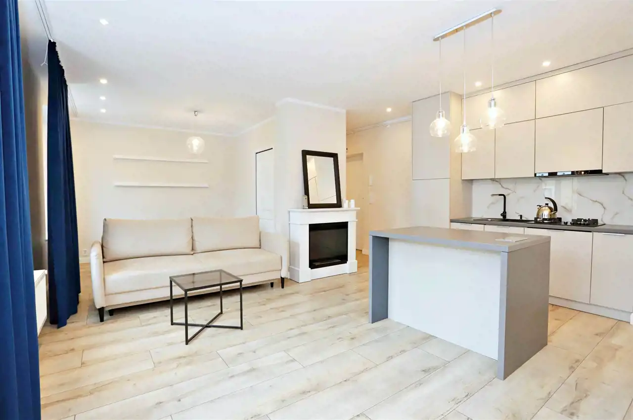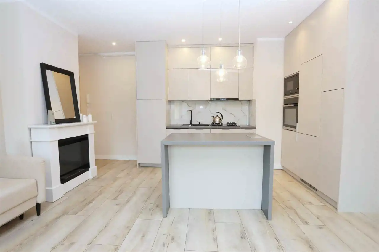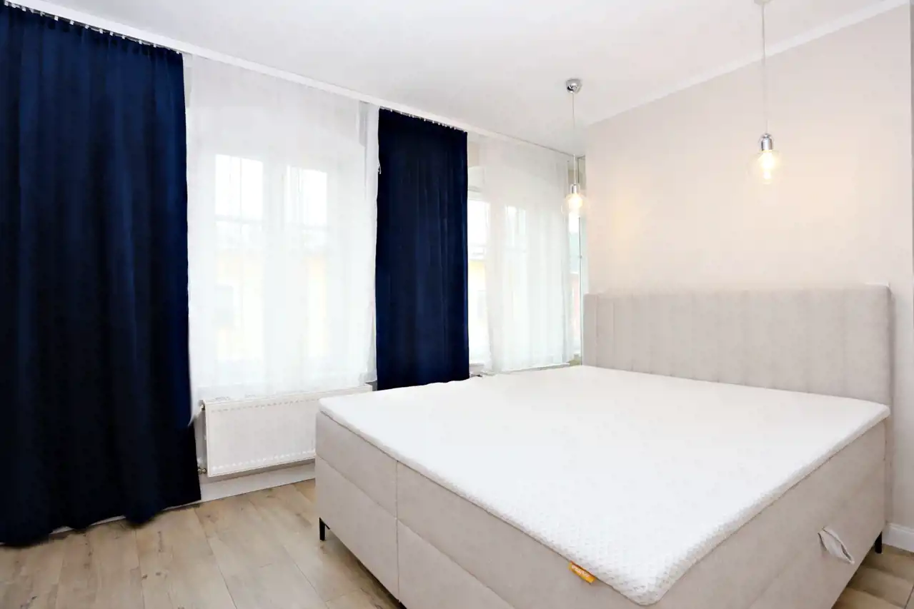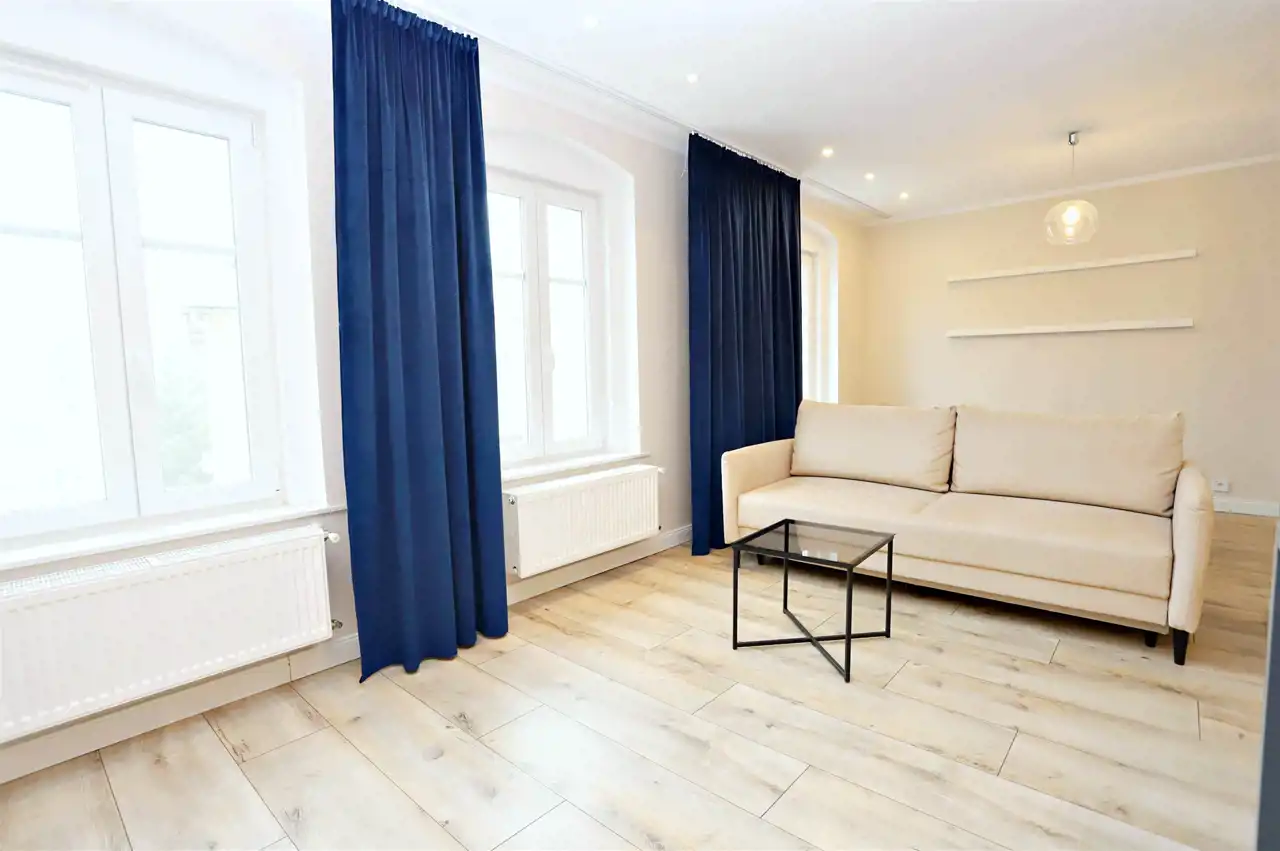 Nieruchomość usytuowana jest na IV piętrze w kamienicy. Mieszkanie składa się z ustawnej oraz przestronnej części dziennej tj. salonu połączonego z aneksem kuchennym wraz z jadalnią, komfortowej sypialni wraz z garderobą, łazienki z toaletą oraz przedpokoju. Mieszkanie zostało w pełni wyposażone i urządzone w stylowy sposób, dzięki czemu jest gotowe do zamieszkania od zaraz. Na wyposażeniu znajdziemy: meble kuchenne na wymiar wraz ze sprzętem ( lodówka, zmywarka, piekarnik, płyta indukcyjna), sofa (inna niż na zdjęciu), stół jadalniany wraz z krzesłami, stolik kawowy, łóżko sypialniane (inne niż na zdjęciu), pralka, duża lustrzana szafa. Całość nieruchomości ogrzewana jest ekonomicznym ogrzewaniem gazowym.