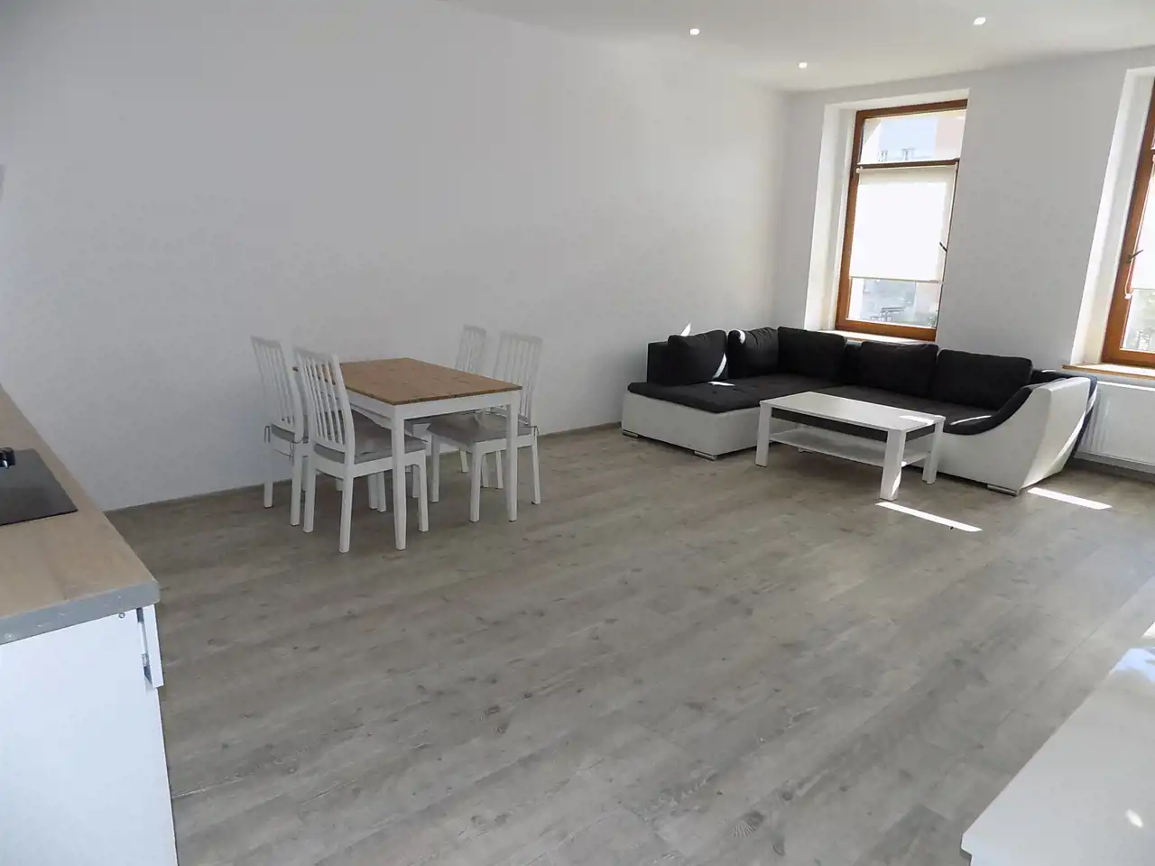 - duży salon z aneksem kuchennym,
