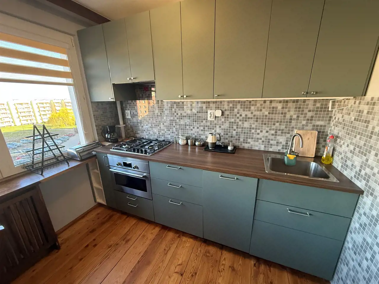Lokal składa się z dwóch pokoi (jeden z nich 25m2), kuchni połączonej z pokojem, łazienki, osobna toaleta oraz przedpokoju.