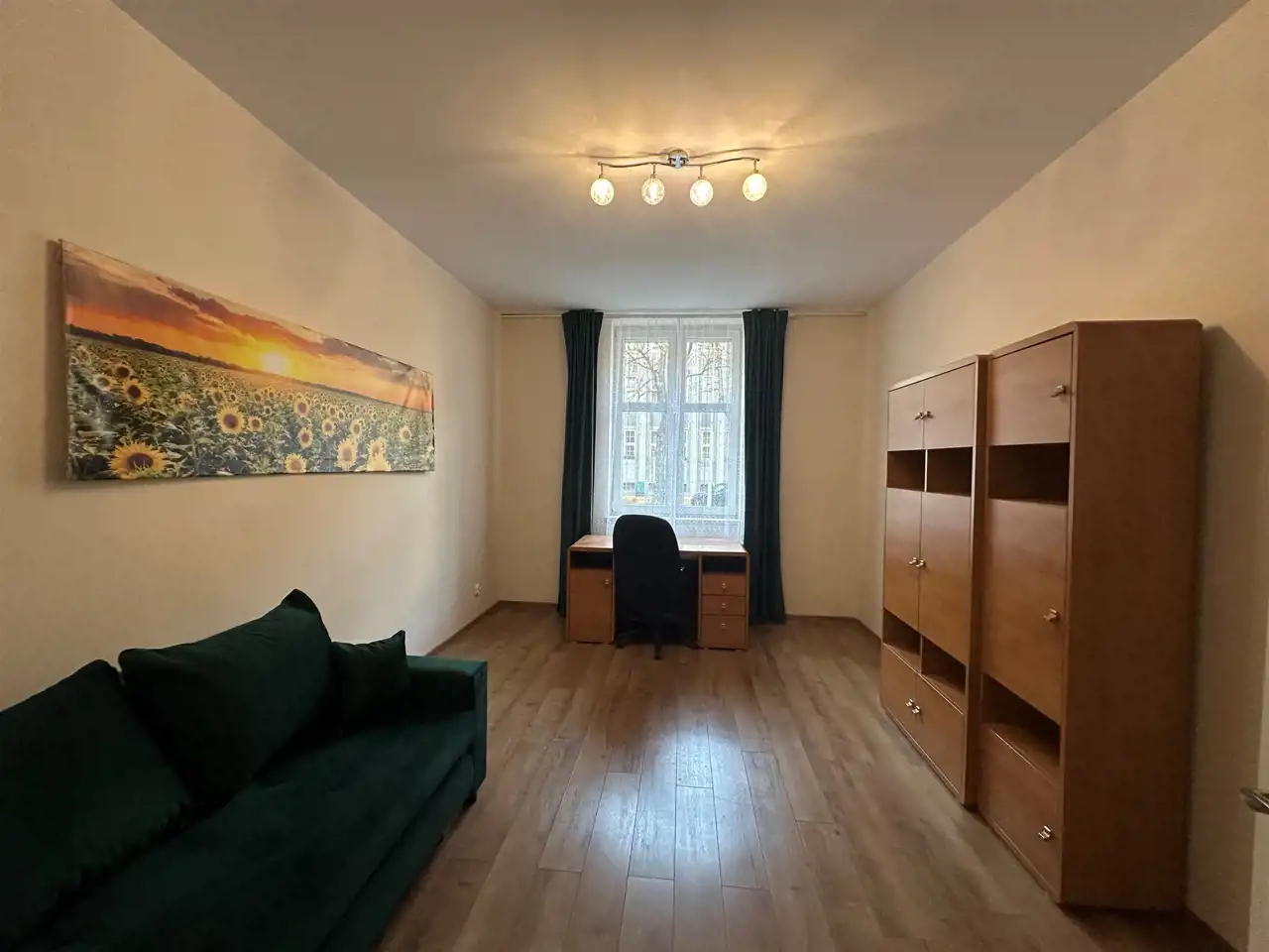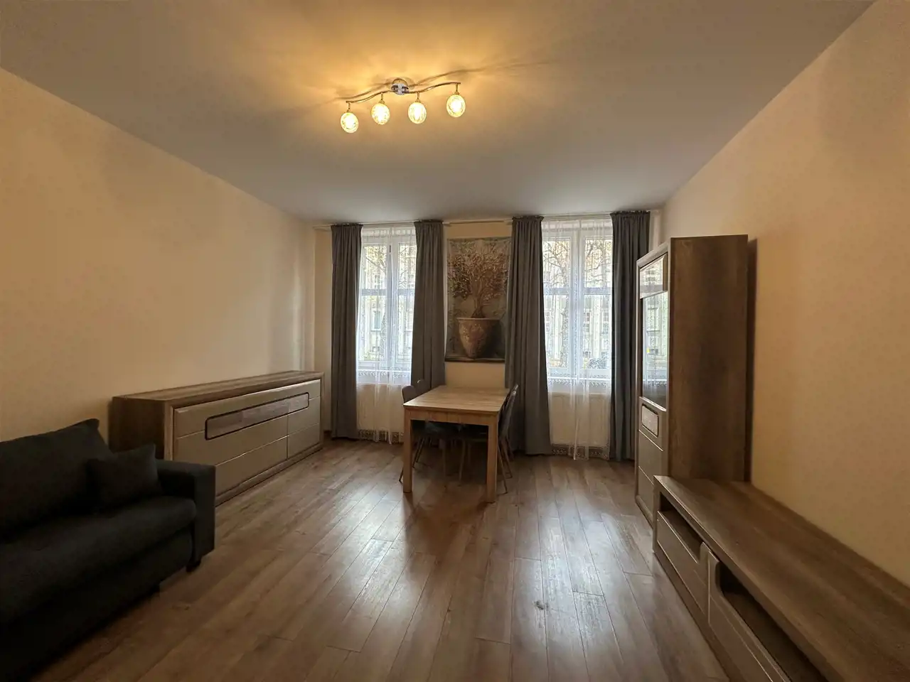 Mieszkanie częściowo wyposażone, odświeżone i odmalowane.
