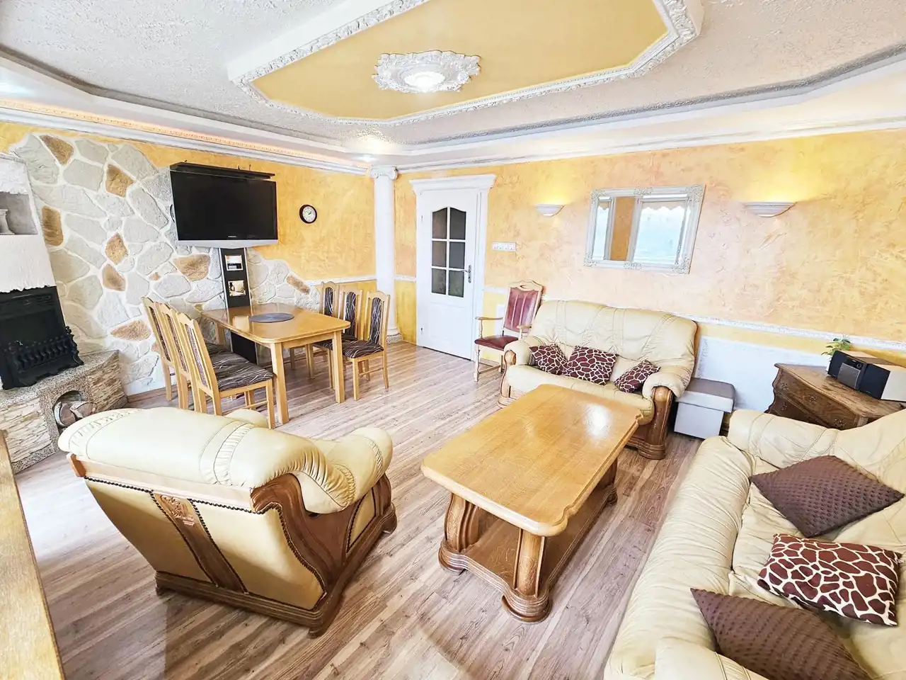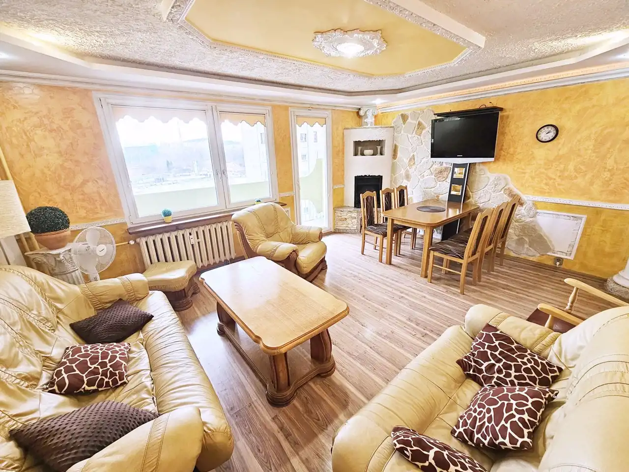 Salon - rozkładana sofa z funkcją spania, fotele, stół, telewizor
