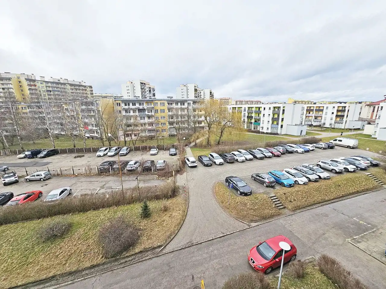 Parking - pod blokiem oraz w pobliżu duży darmowy parking widoczny z okna