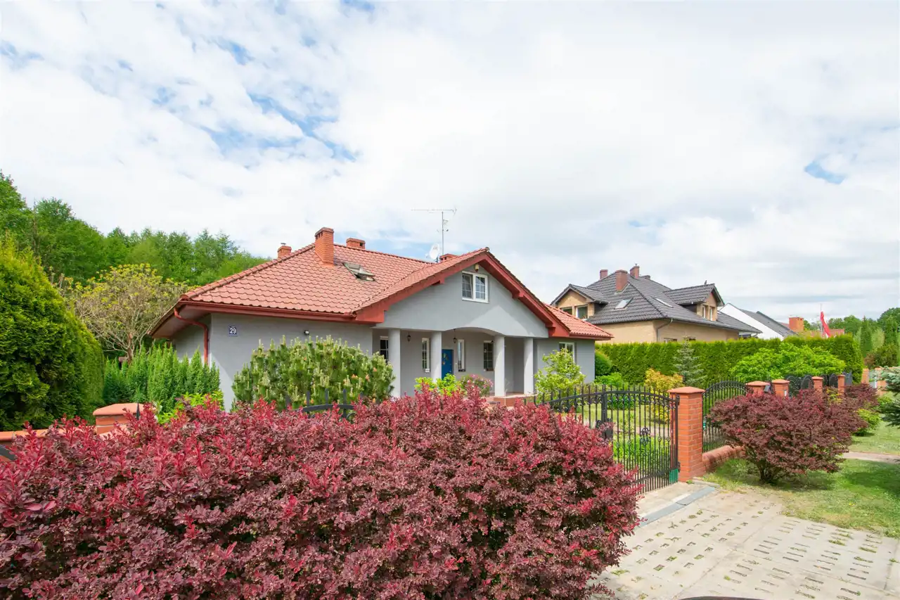 Okna PCV i dach pokryty dachówką gwarantują dobrą izolację termiczną i nienaganną estetykę.