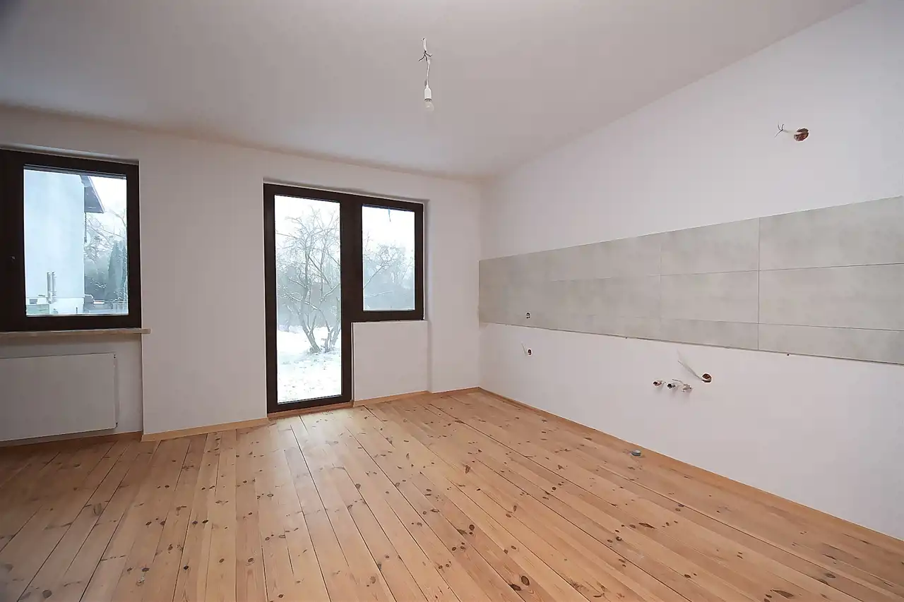 - kuchnia z jadalnią ok. 20 m2 (drzwi balkonowe przygotowane do wykonania tarasu lub balkonu- zejście do ogrodu)
