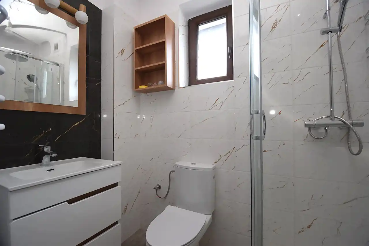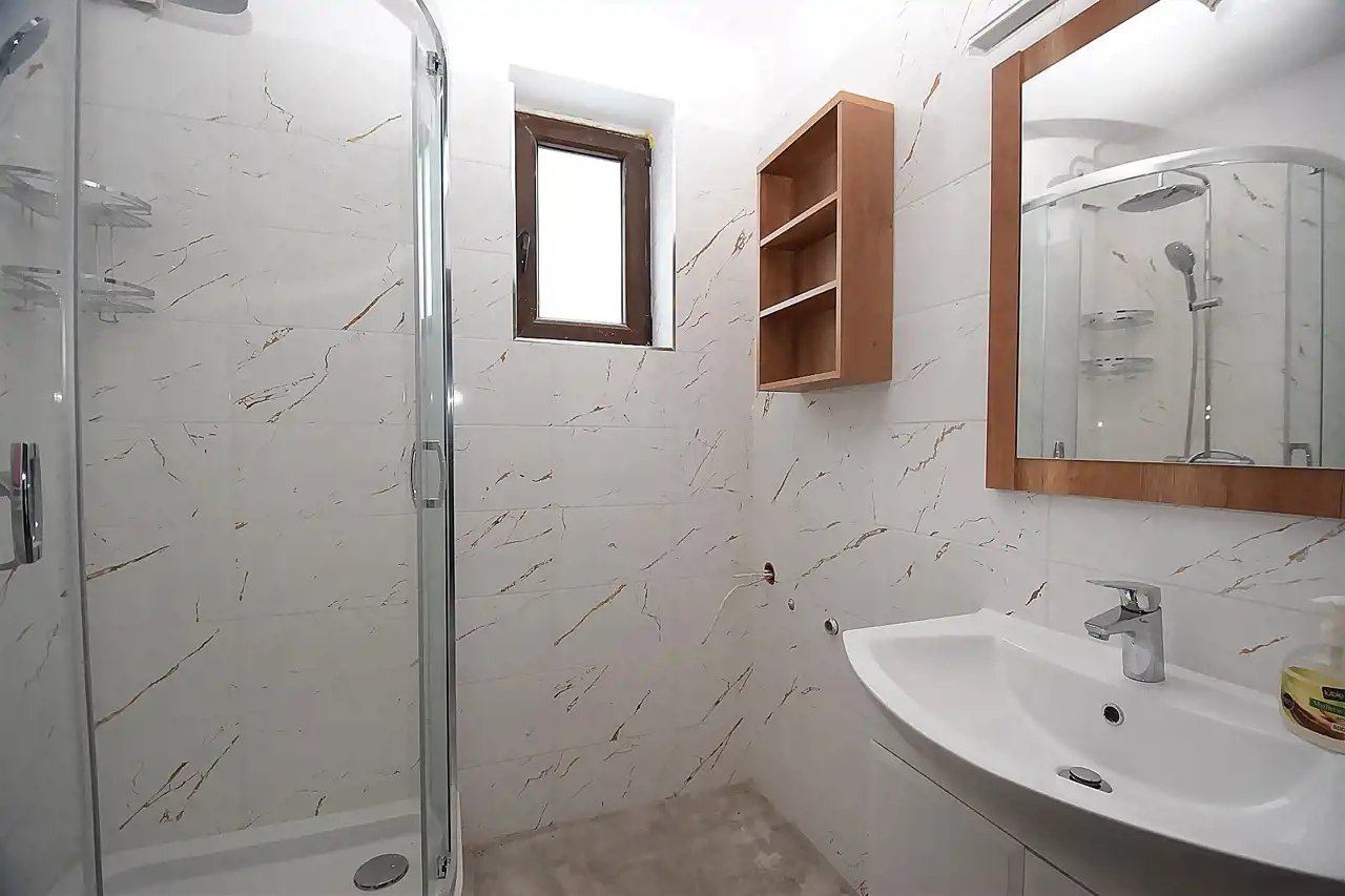 - łazienka z wc ok. 3 m2 (wyposażona w kabinę prysznicową)