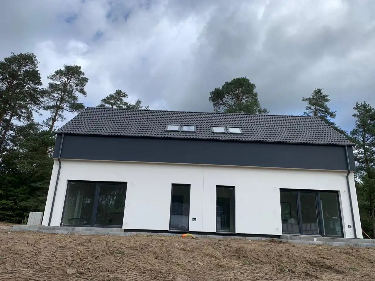 Nowoczesne technologie: dachówka Braas, okna Gealan s9000, taras z kostki betonowej, schody wejściowe, wysoki standard wykonania.