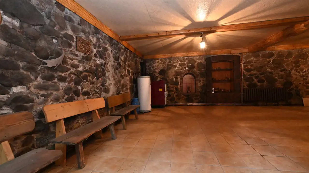 Ściany murowane z kamienia, cegły i częściowo suporex.