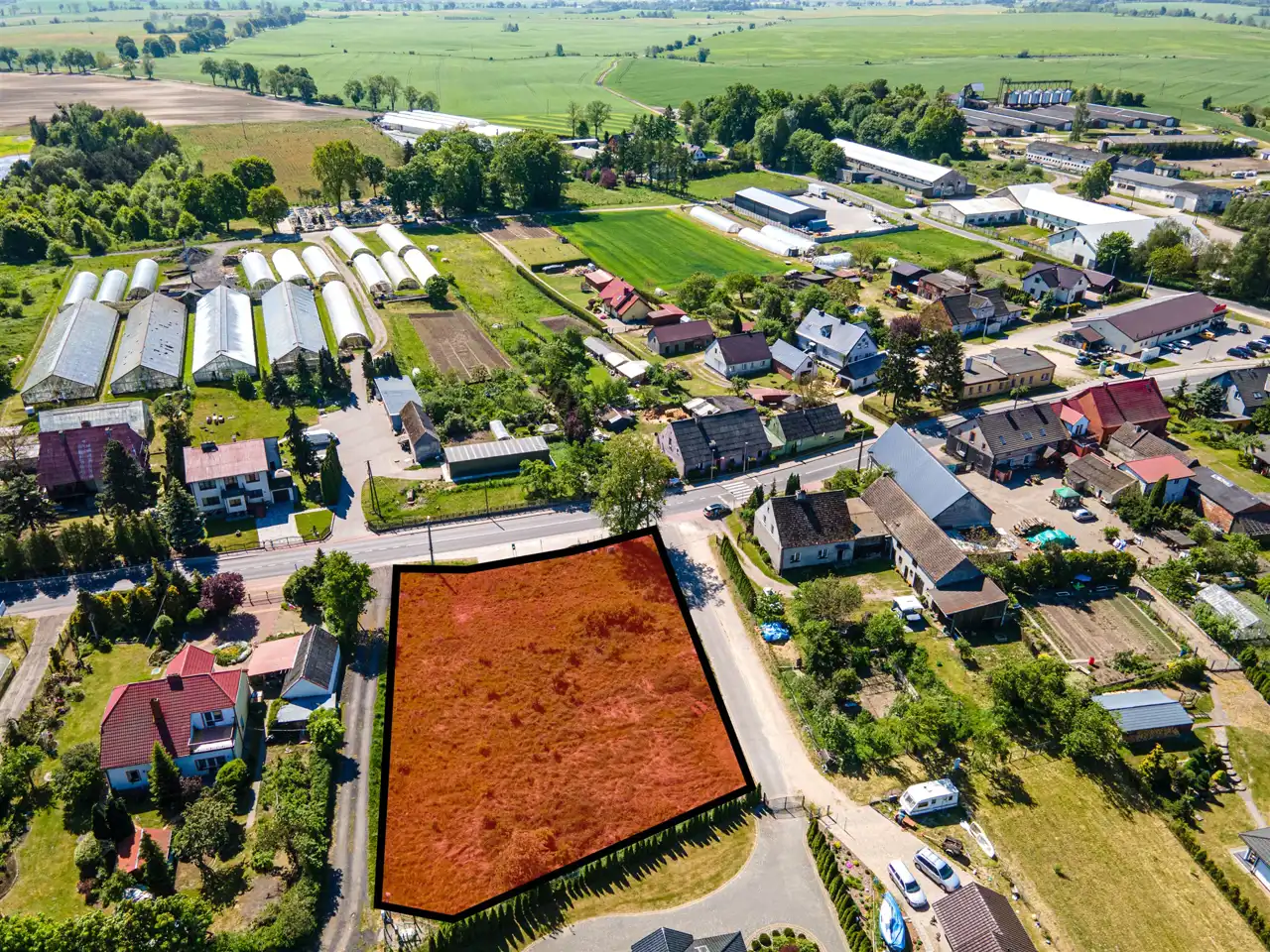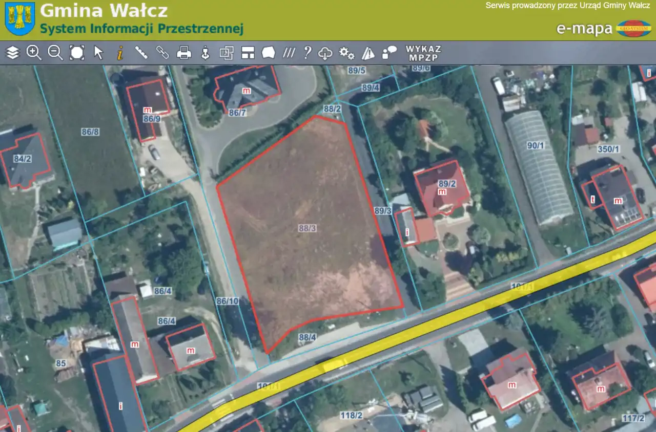 Działka położona jest zaledwie 12 minut samochodem od centrum Wałcza. We wsi znajduje się szkoła podstawowa, przystanki autobusowe i market Dino. W sąsiedztwie zagospodarowane działki.