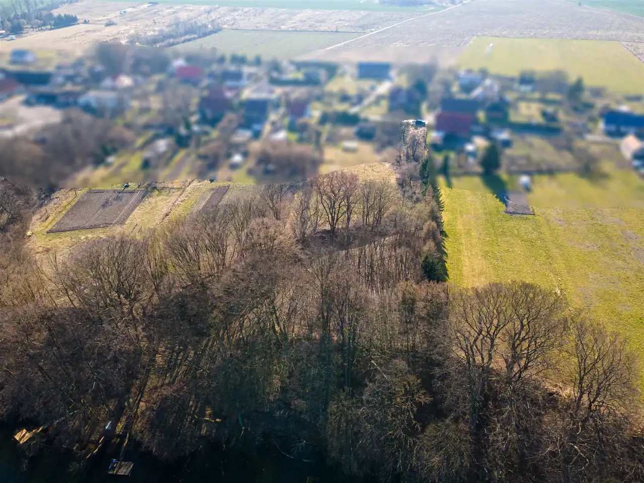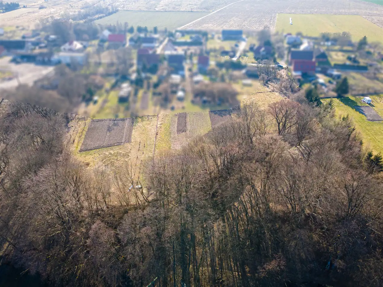 - Działka Niezagospodarowana, częściowo zalesiona, nieregularny